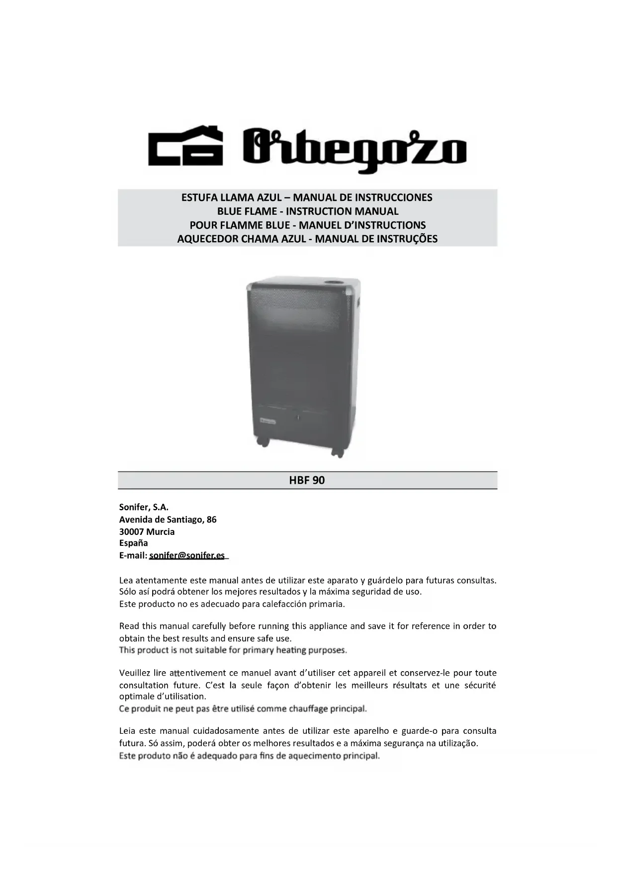 HBF 90 - Poêle Orbegozo - Notice d'utilisation et mode d'emploi gratuit