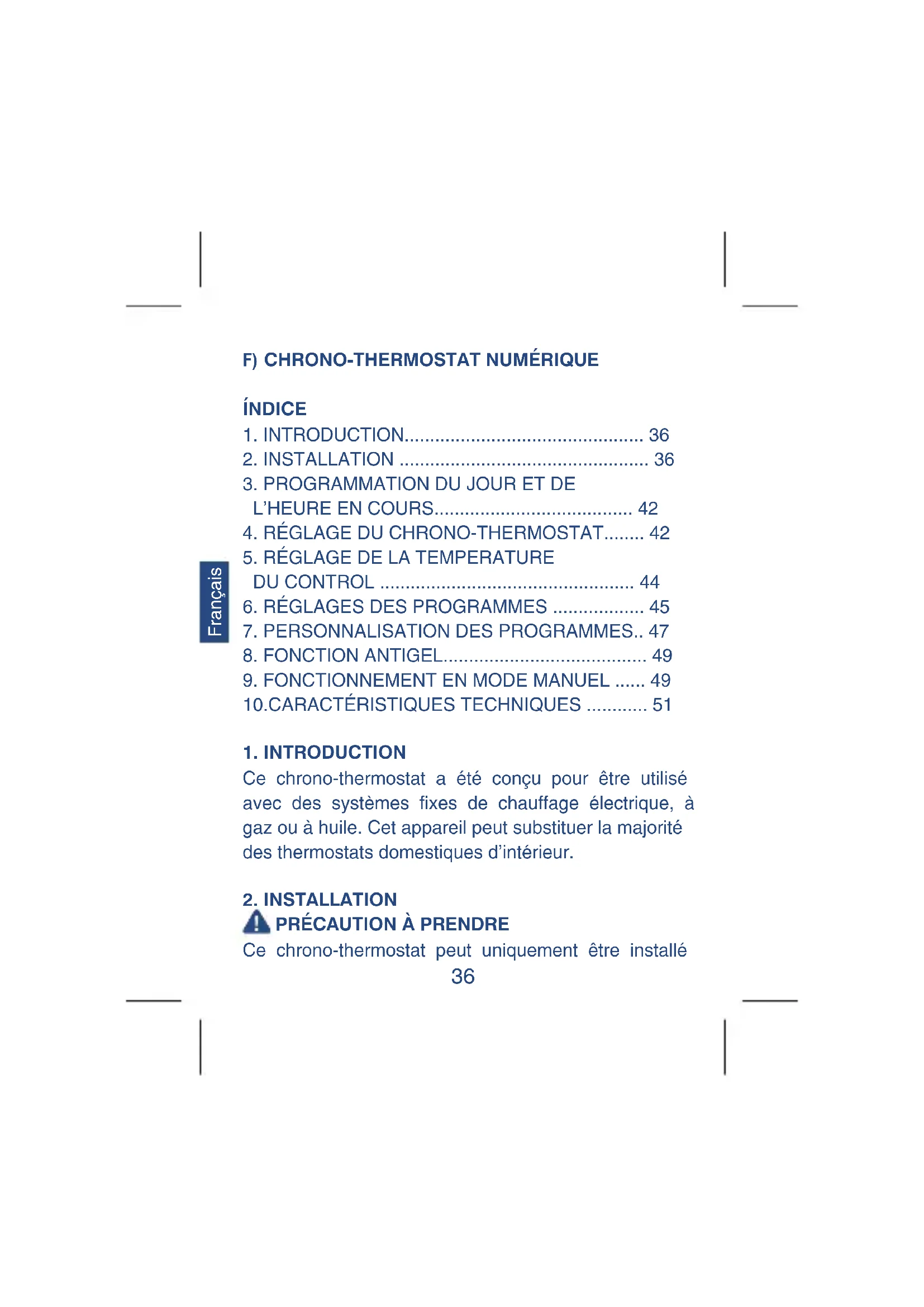 Ce chrono-thermostat peut uniquement être installé36 Français