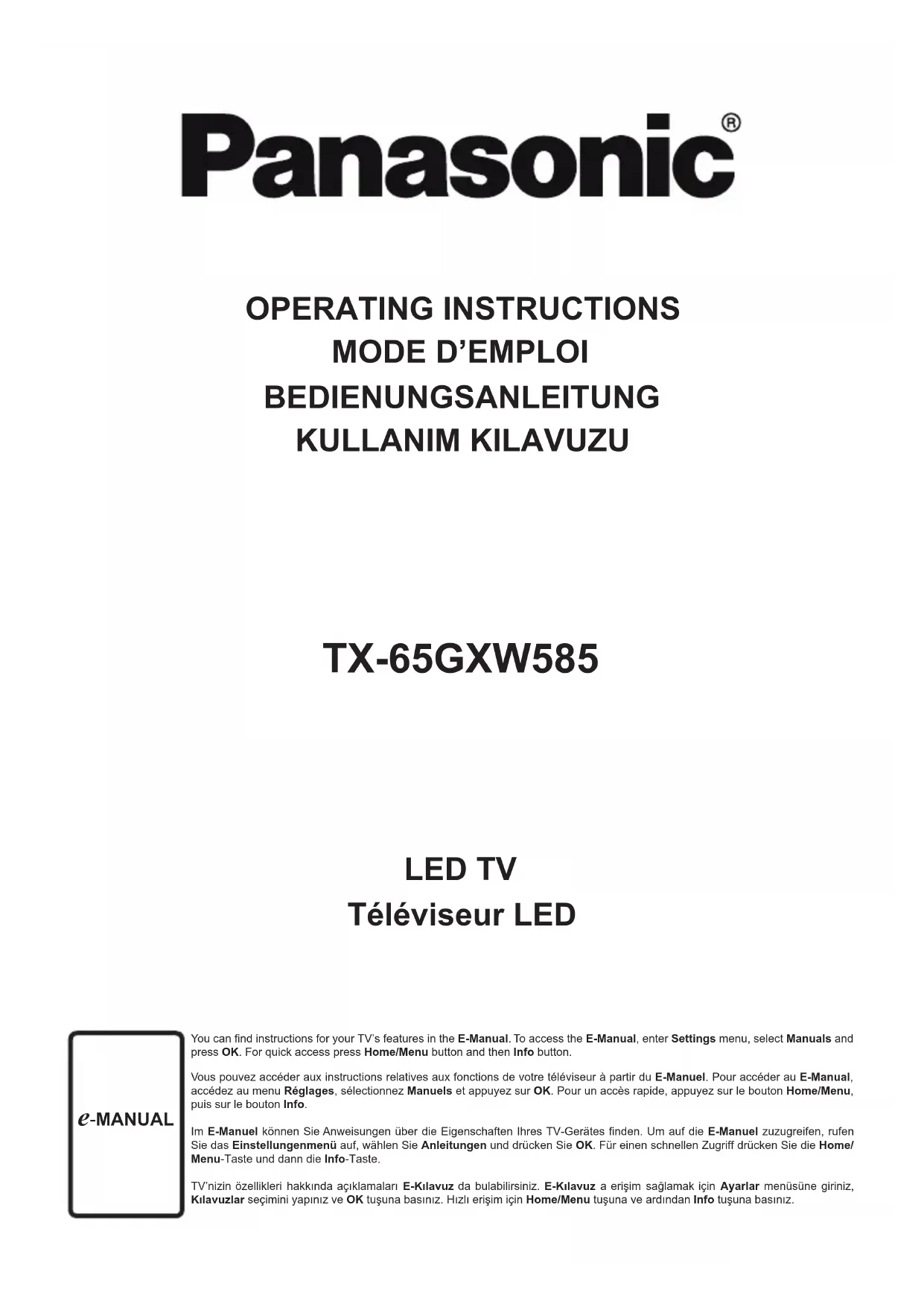 Retrouvez gratuitement la notice de l'appareil TX65GXW585 PANASONIC au format PDF.