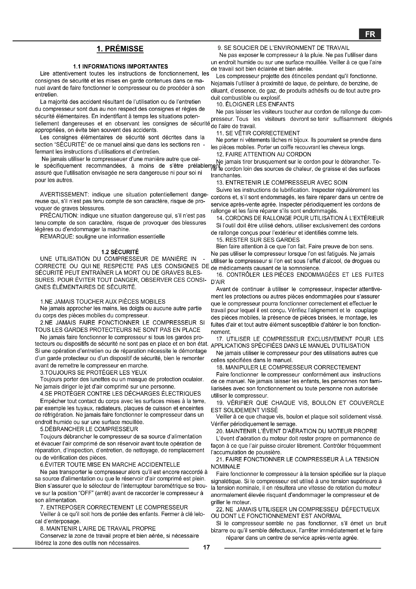 17. UTILISER LE COMPRESSEUR EXCLUSIVEMENT POUR LES
