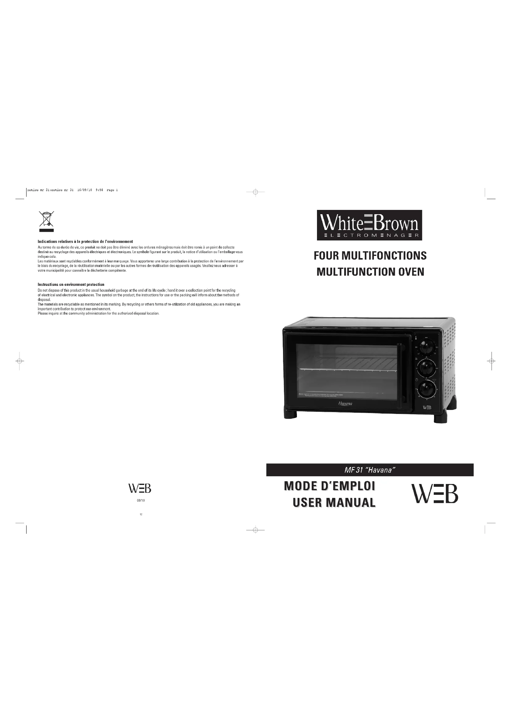 MF 31 - Four WHITE AND BROWN - Notice d'utilisation et mode d'emploi gratuit