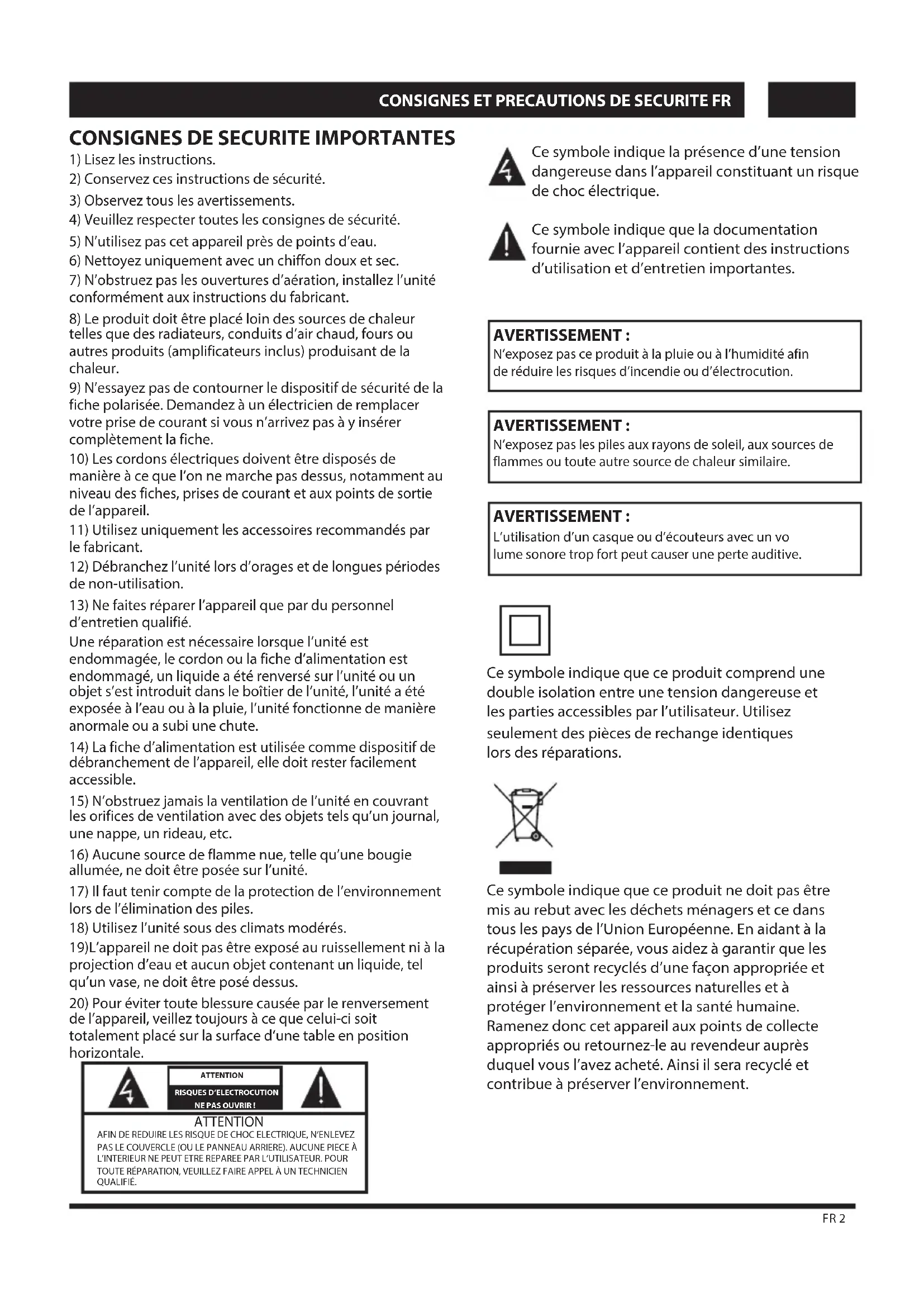 CONSIGNES ET PRECAUTIONS DE SECURITEFR