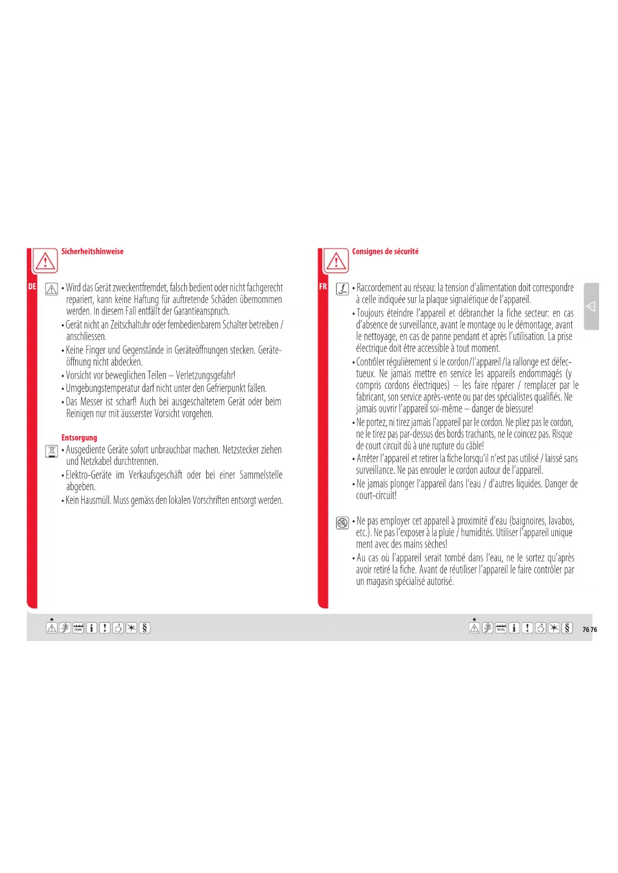 ment avec des mains sèches!98 98 Consignes de sécurité Consignes de sécurité FR FR