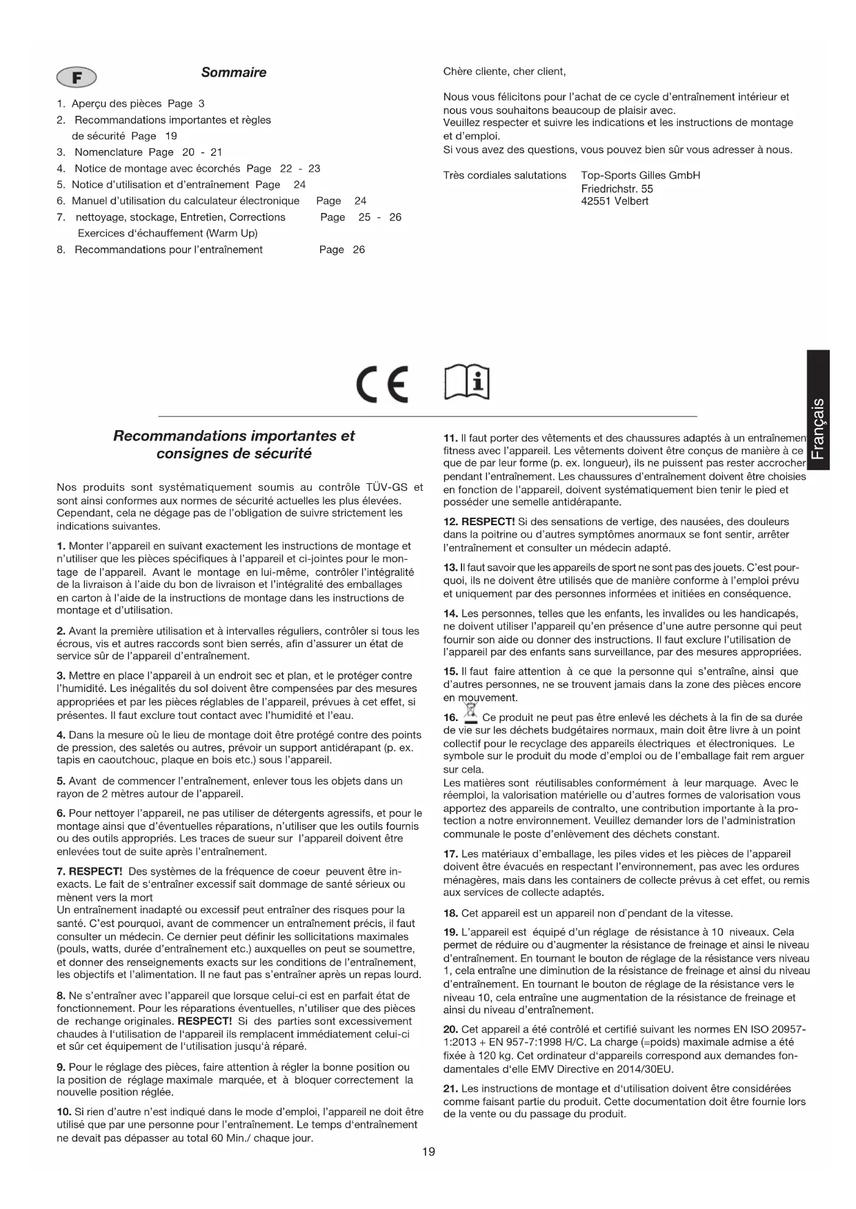 Nous vous félicitons pour l'achat de ce cycle d'entrainment interieur et nous vous souhaionts beaucoup de plaisir avec.