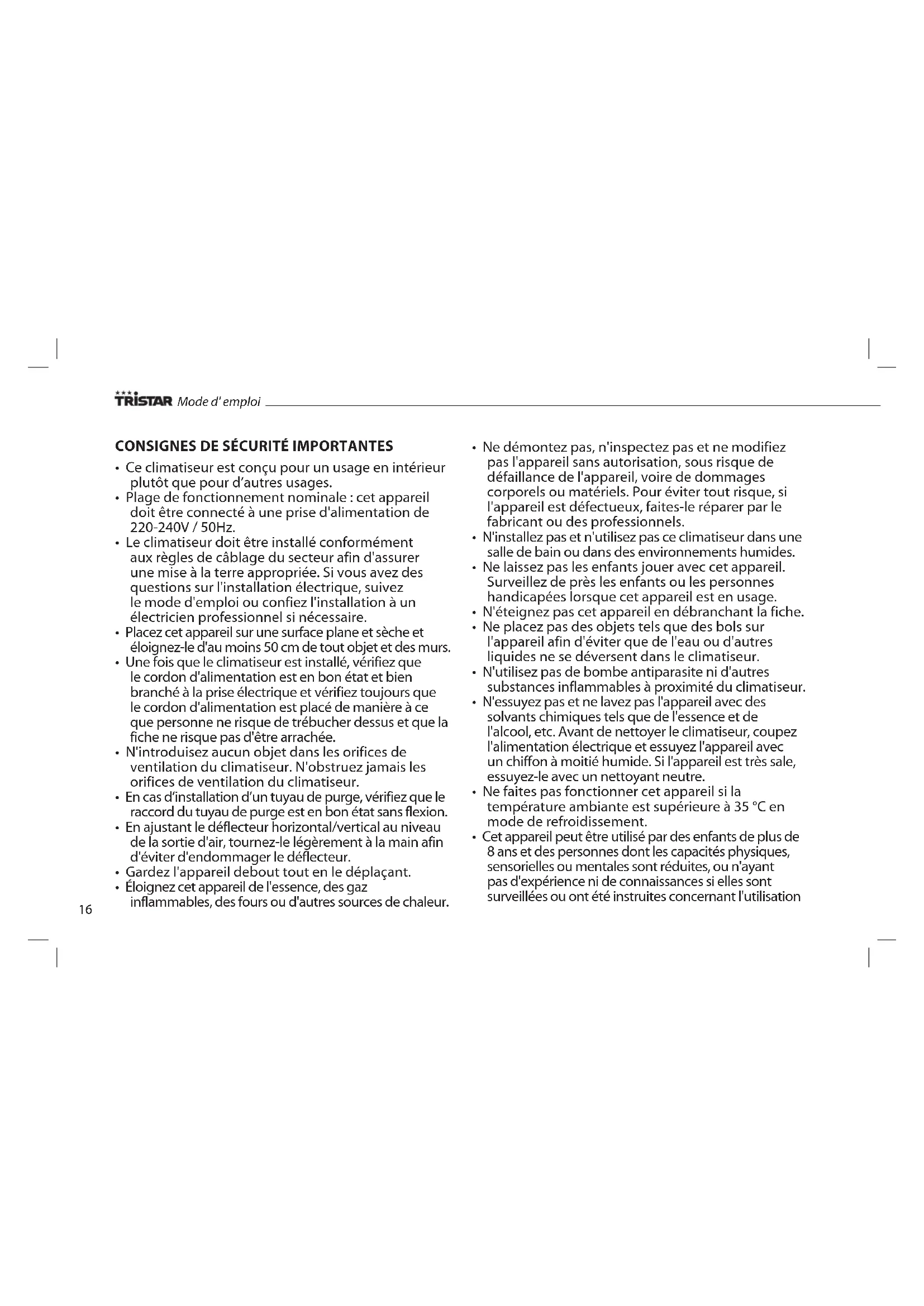 AC5519CH - Climatisation TRISTAR - Notice d'utilisation et mode d'emploi gratuit
