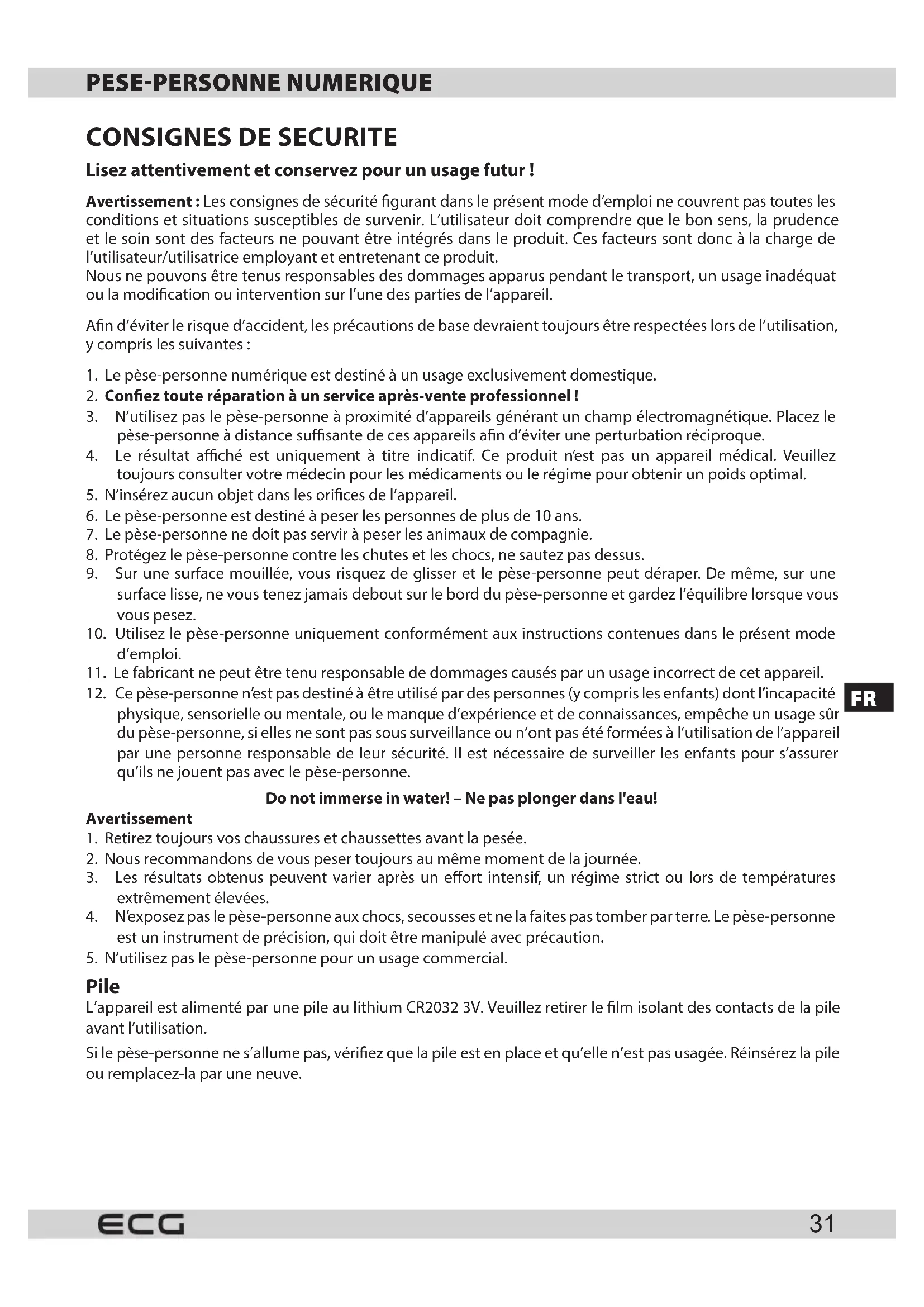 - Le pèse-personne numérique est destiné à un usage exclusivement domestique.