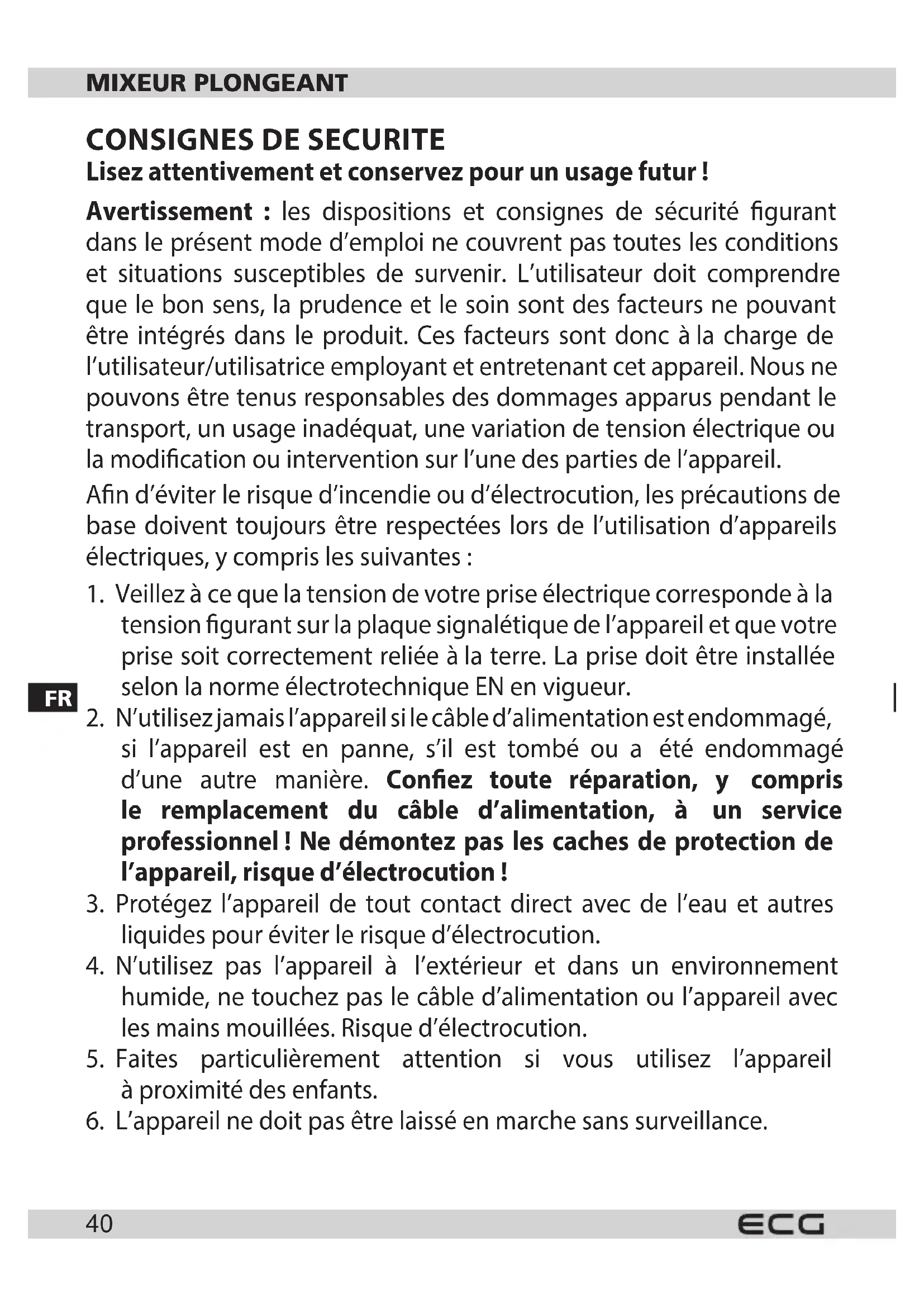 RM 430 - Mixeur plongeant ECG - Notice d'utilisation et mode d'emploi gratuit