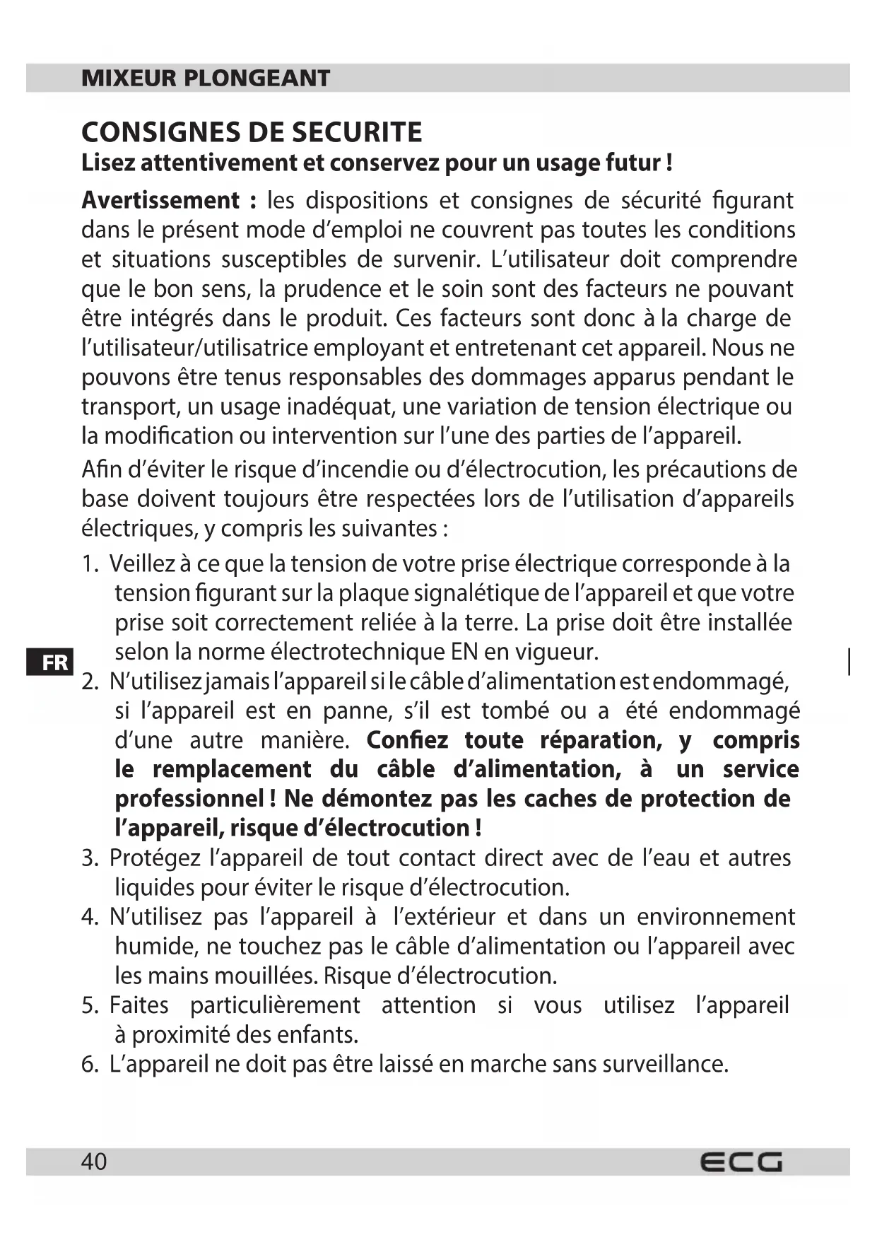 RM 410 - Mixeur plongeant ECG - Notice d'utilisation et mode d'emploi gratuit