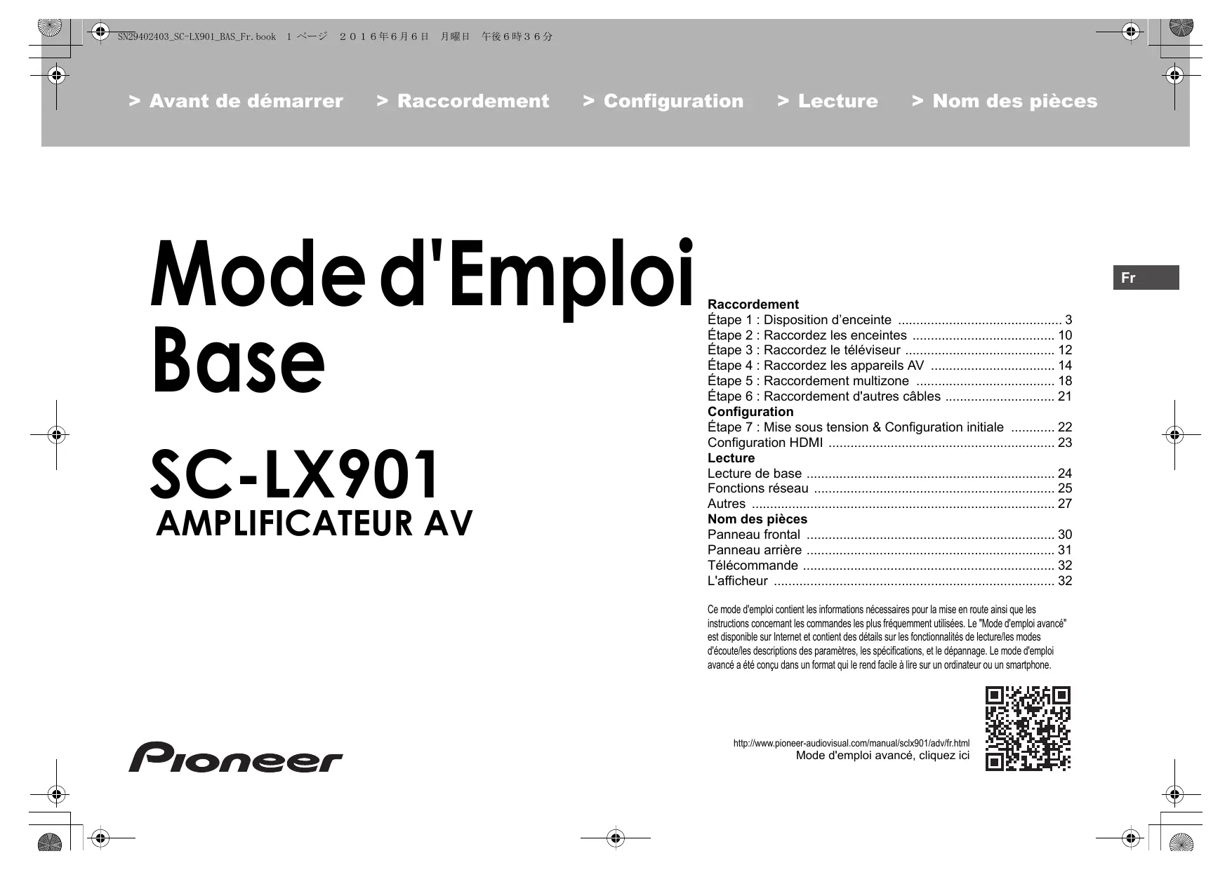 MODE D'EMPLOI SCLX901, SC-LX901 PIONEER