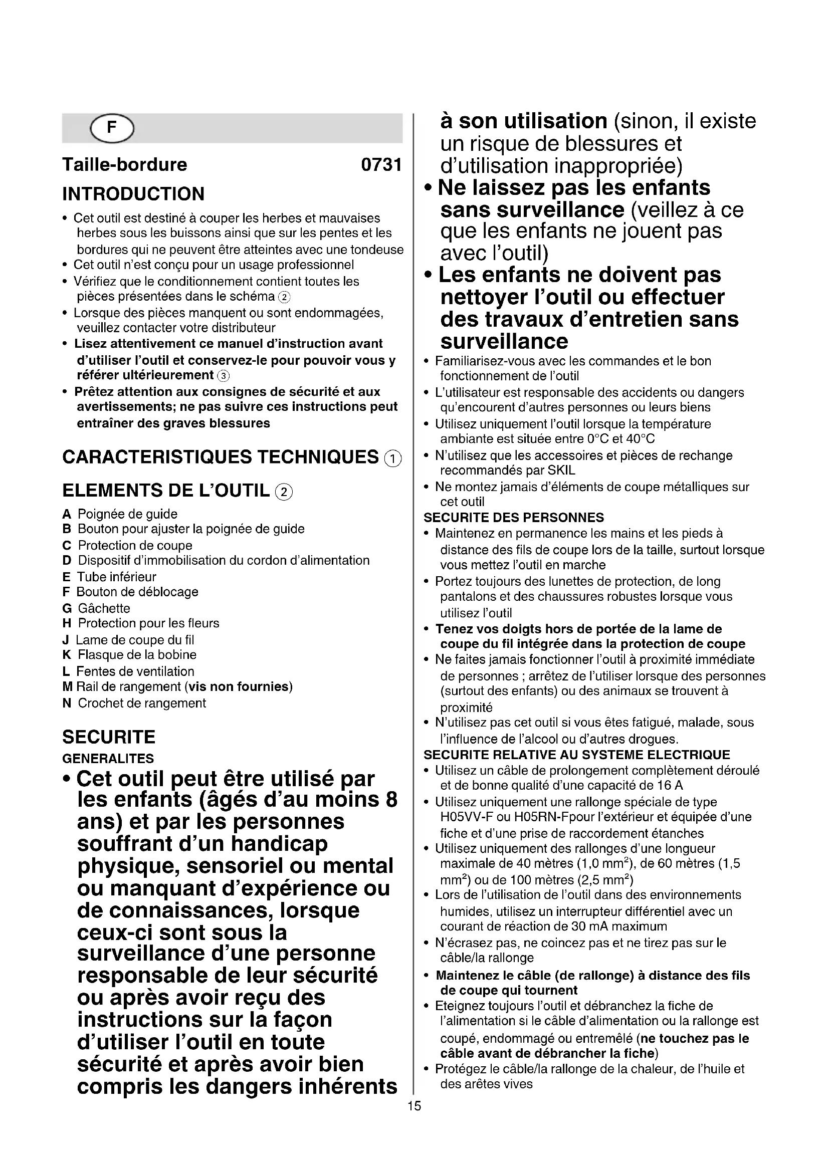 MODE D'EMPLOI 0731 AA SKIL