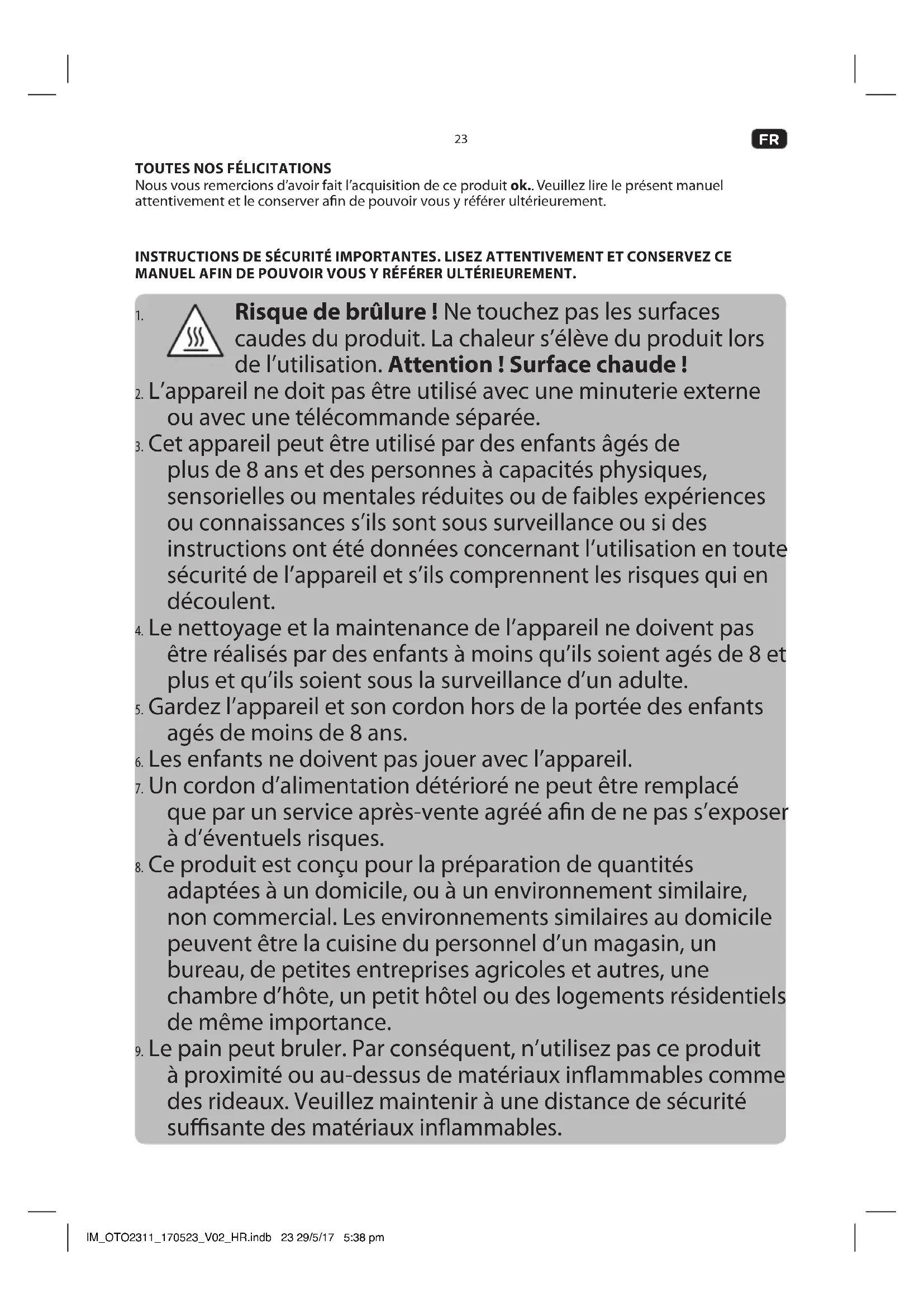 Retrouvez gratuitement la notice de l'appareil OTO 2311 OK au format PDF.