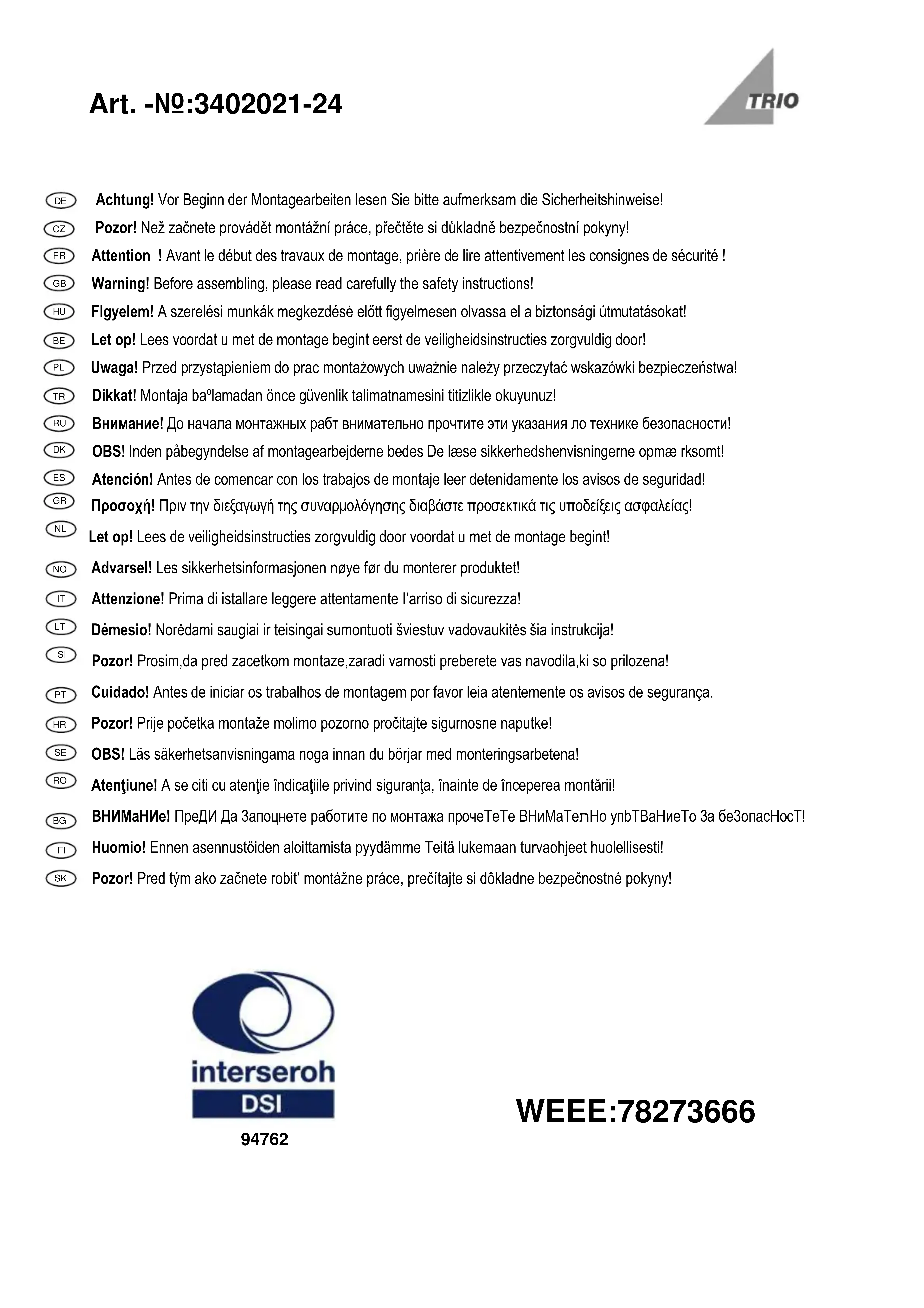 Retrouvez gratuitement la notice de l'appareil Rustica 340202124 Trio Lighting au format PDF.