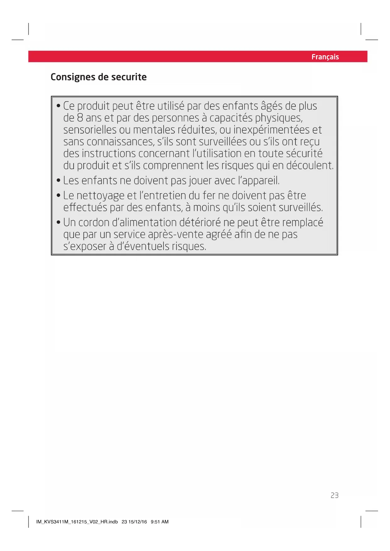 - Le nettoyage et l'entretien du fer ne doivent pas etre effectués par des enfants, à moins qu'ils soient surveillés.