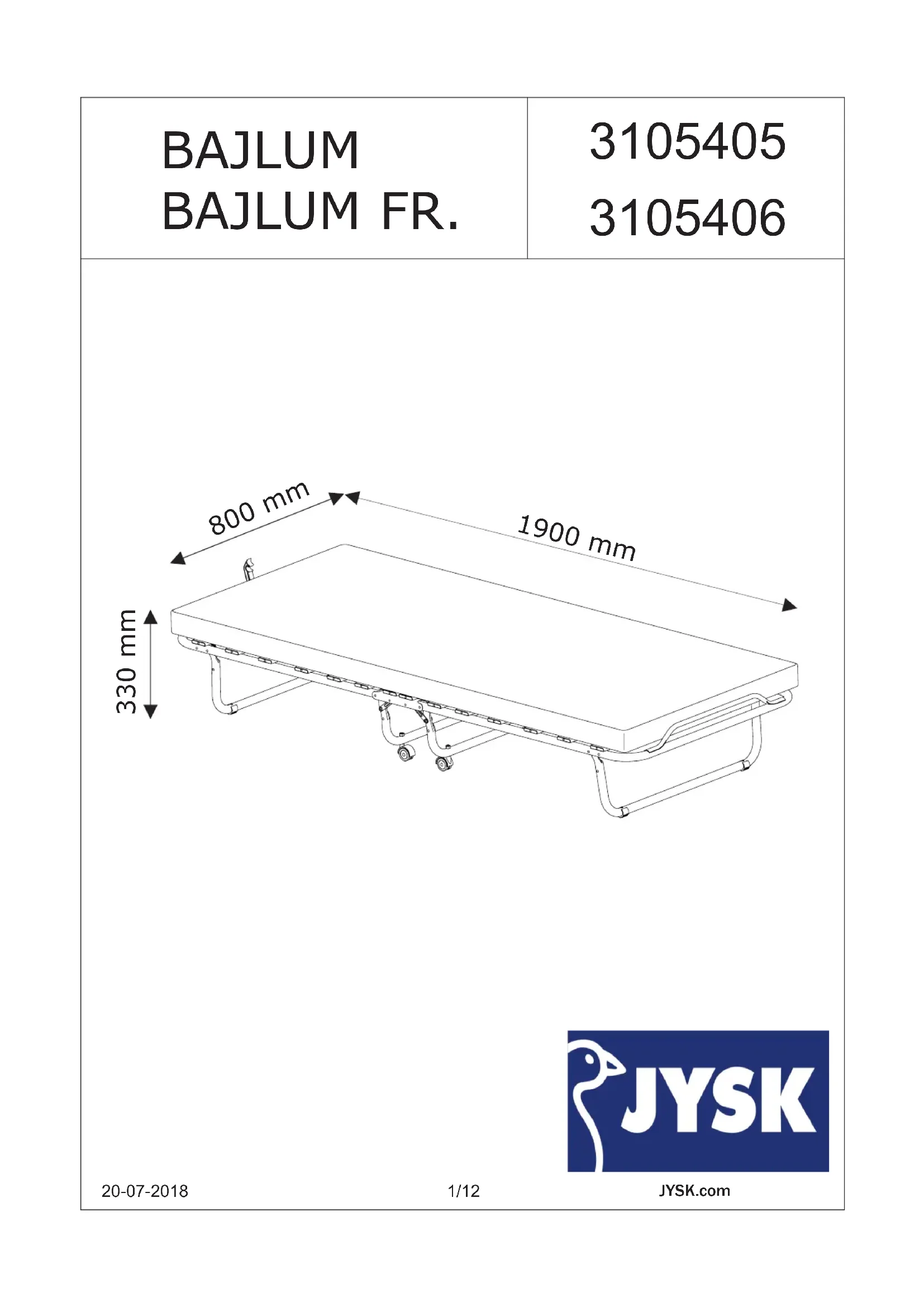 Bajlum - Lit pliant JYSK - Notice d'utilisation et mode d'emploi gratuit