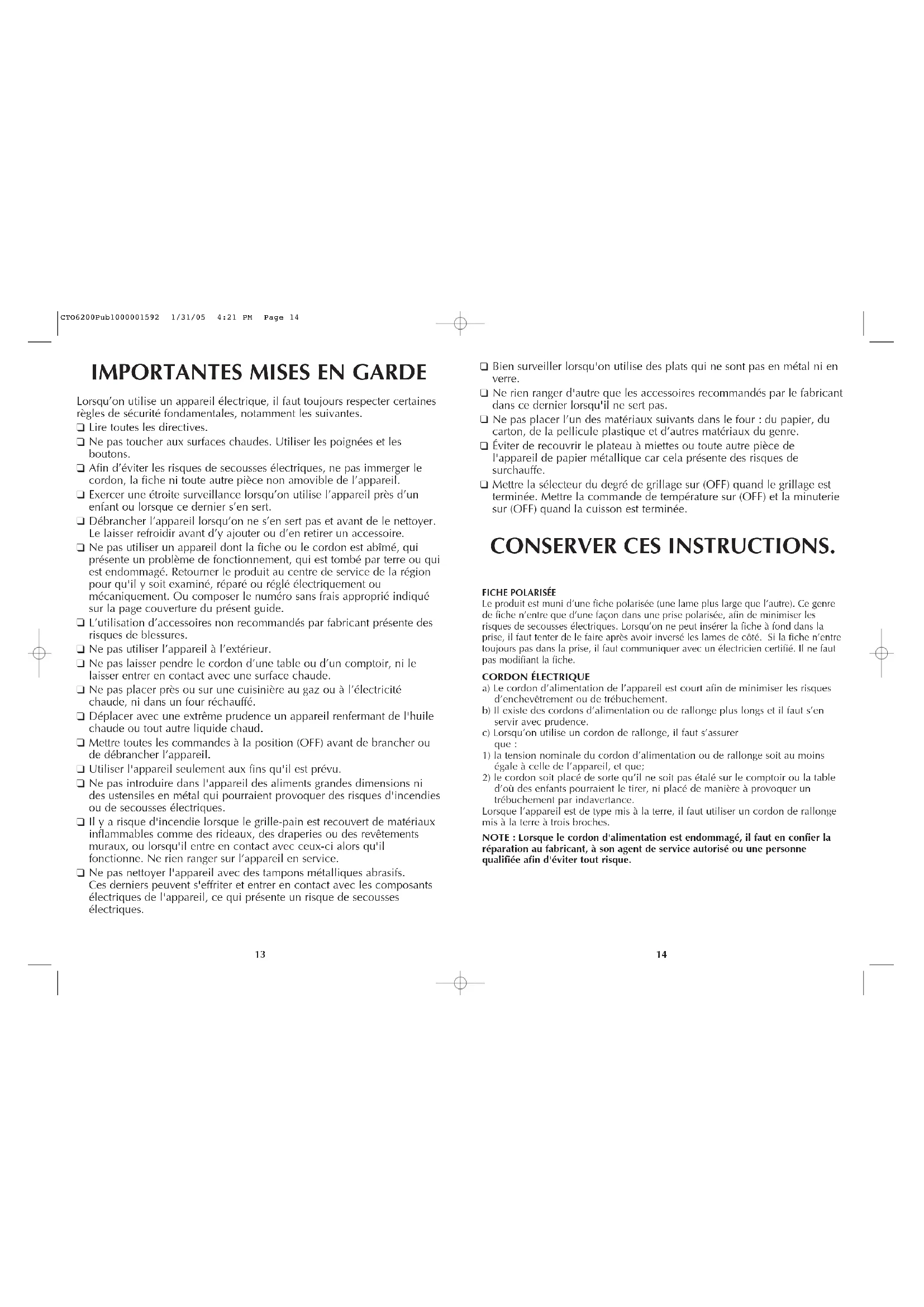 MODE D'EMPLOI CTO6200 BLACK & DECKER