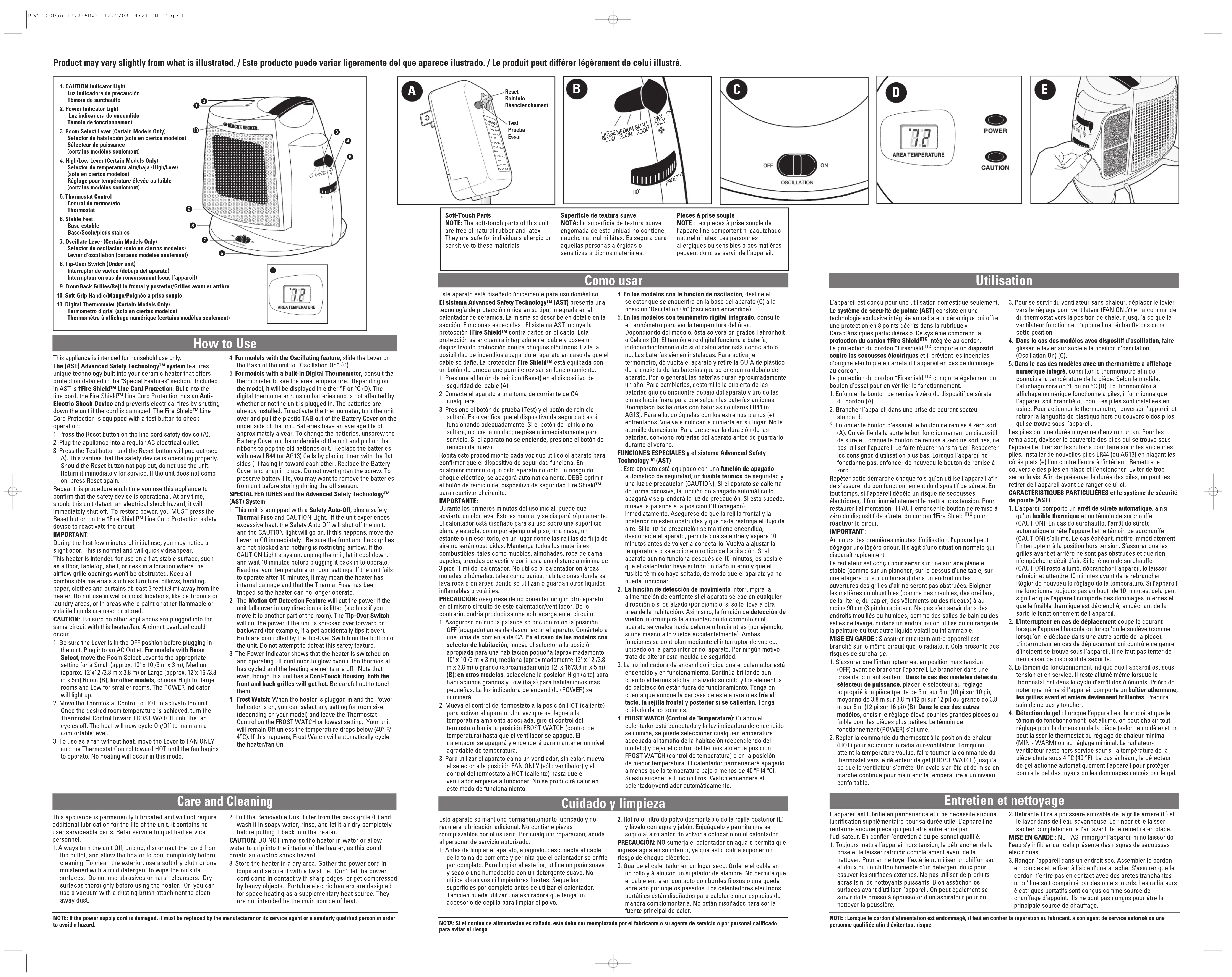 Téléchargez la notice de votre Chauffage au format PDF gratuitement ! Retrouvez votre notice BDCH100 - BLACK & DECKER et reprennez votre appareil électronique en main. Sur cette page sont publiés tous les documents nécessaires à l'utilisation de votre appareil BDCH100 de la marque BLACK & DECKER.