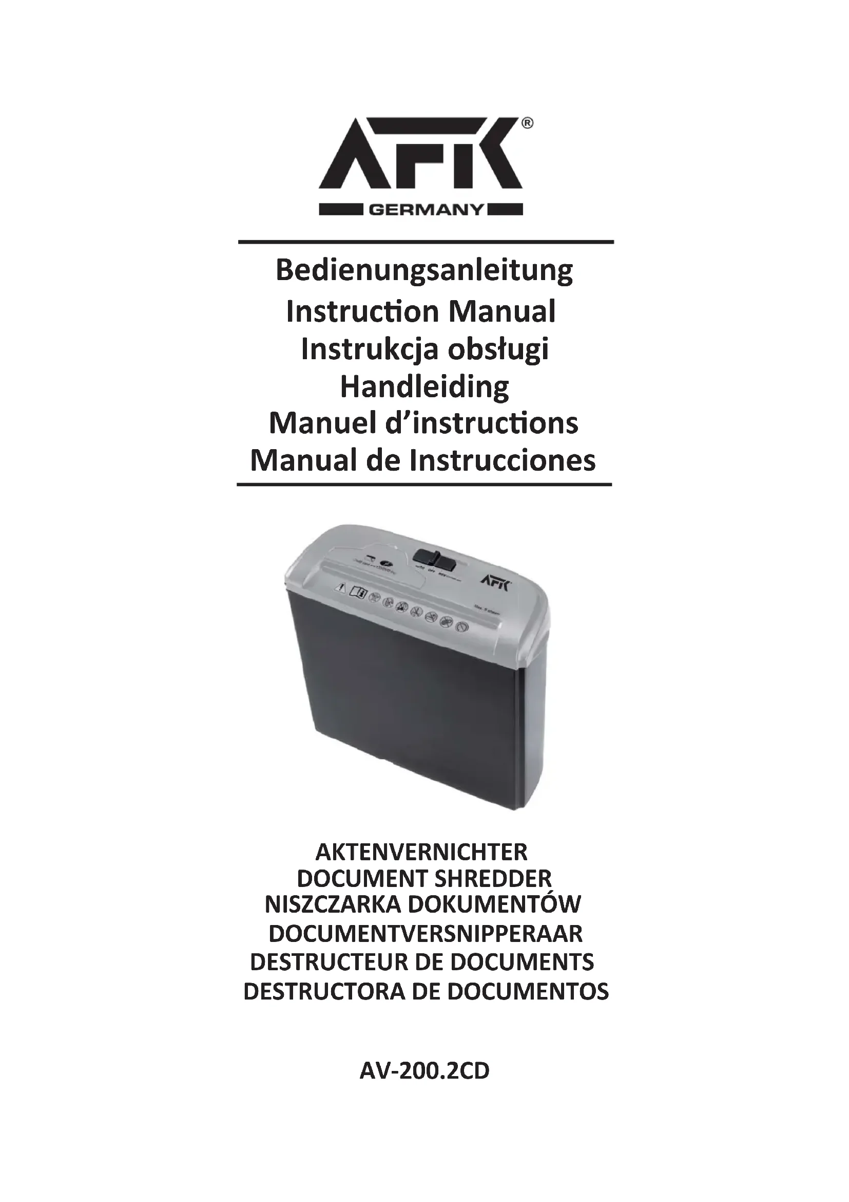 AV200.2CD - Destructeur de documents AFK - Notice d'utilisation et mode d'emploi gratuit