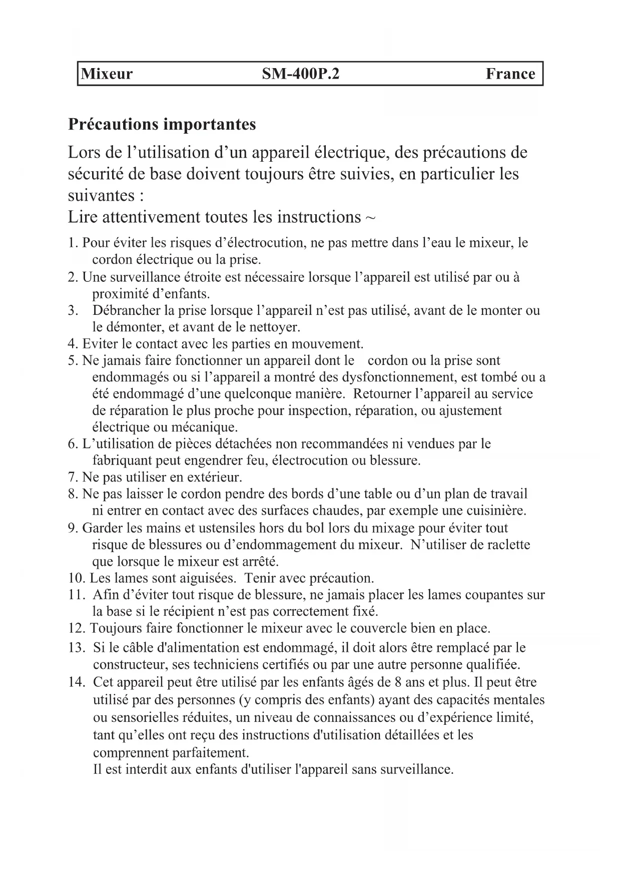 SM400P.2 - Blender AFK - Notice d'utilisation et mode d'emploi gratuit