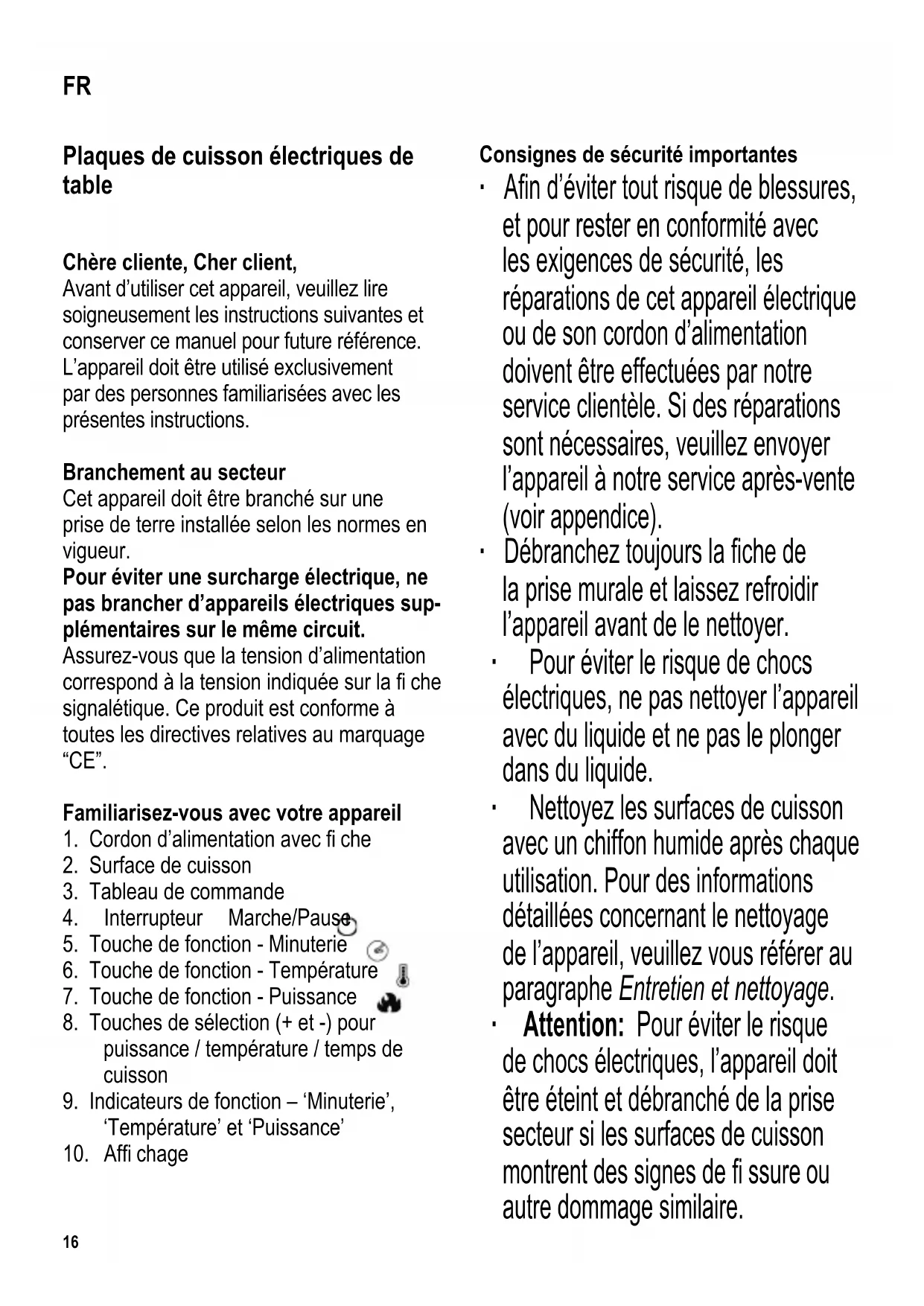 FR Mode d'emploi Plaques de cuisson electriques de table 16