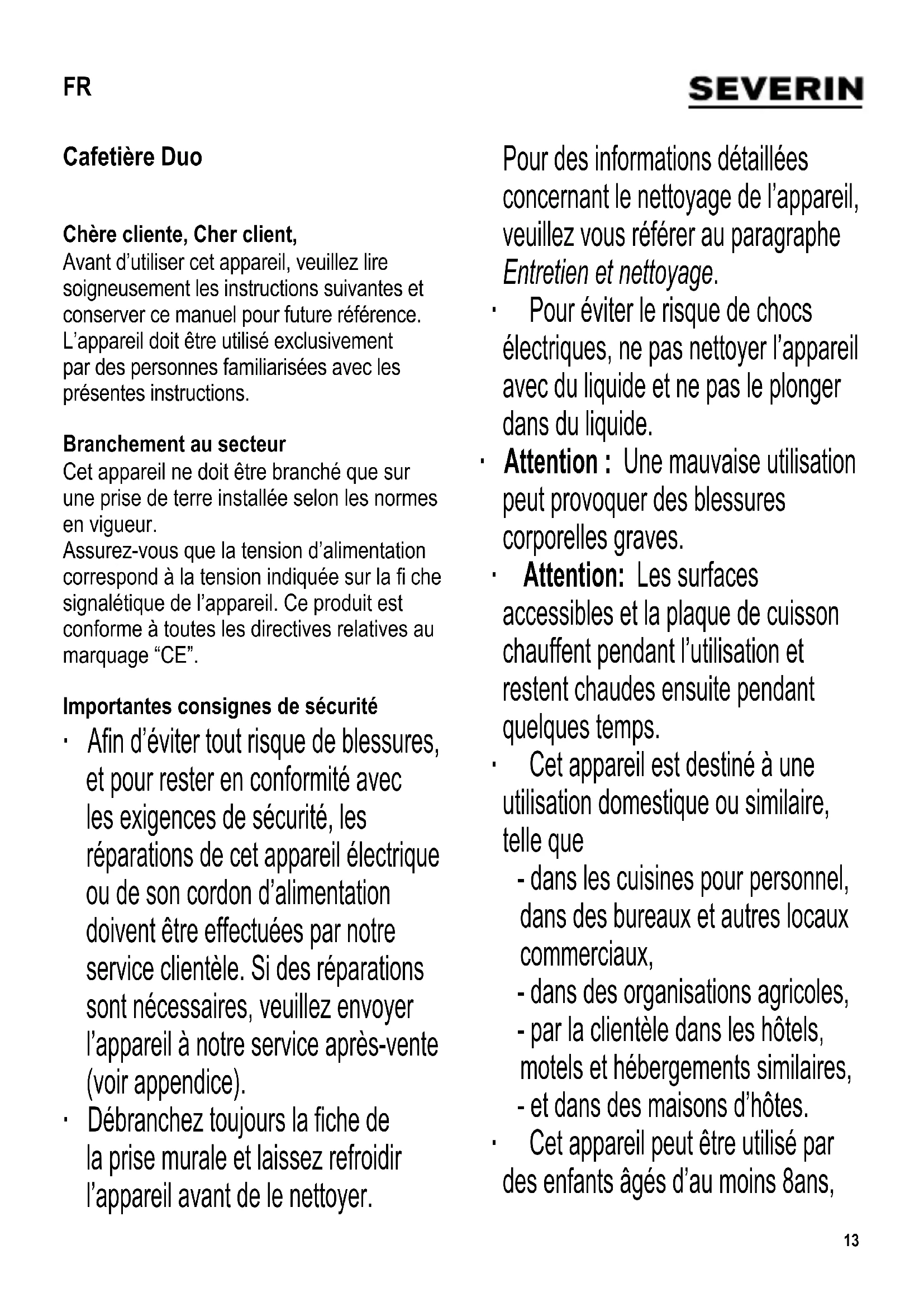 Retrouvez gratuitement la notice de l'appareil KA 5800 SEVERIN au format PDF.