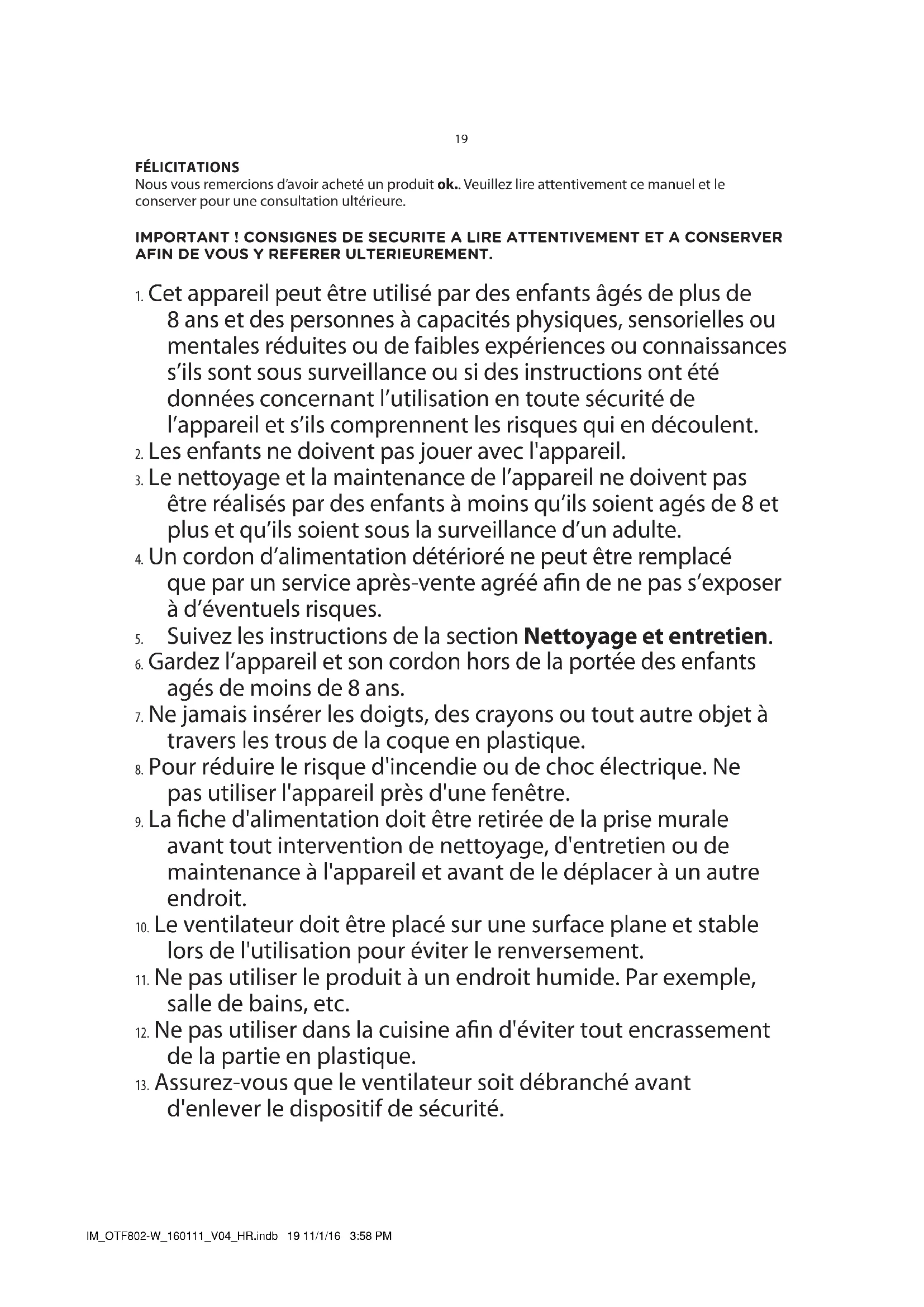 OTF 802W - Ventilateur OK - Notice d'utilisation et mode d'emploi gratuit