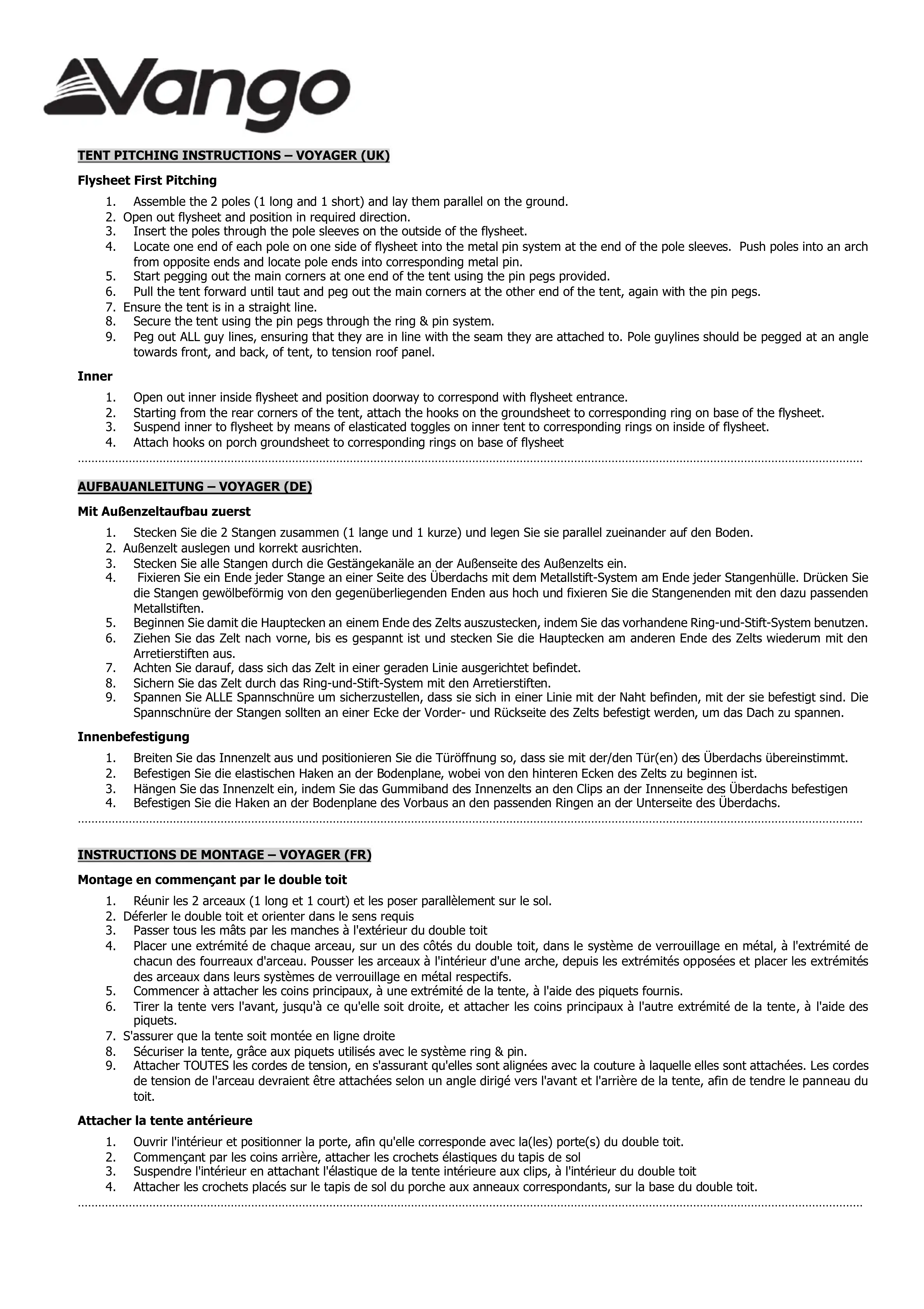 Voyager 300 - Tente Vango - Notice d'utilisation et mode d'emploi gratuit