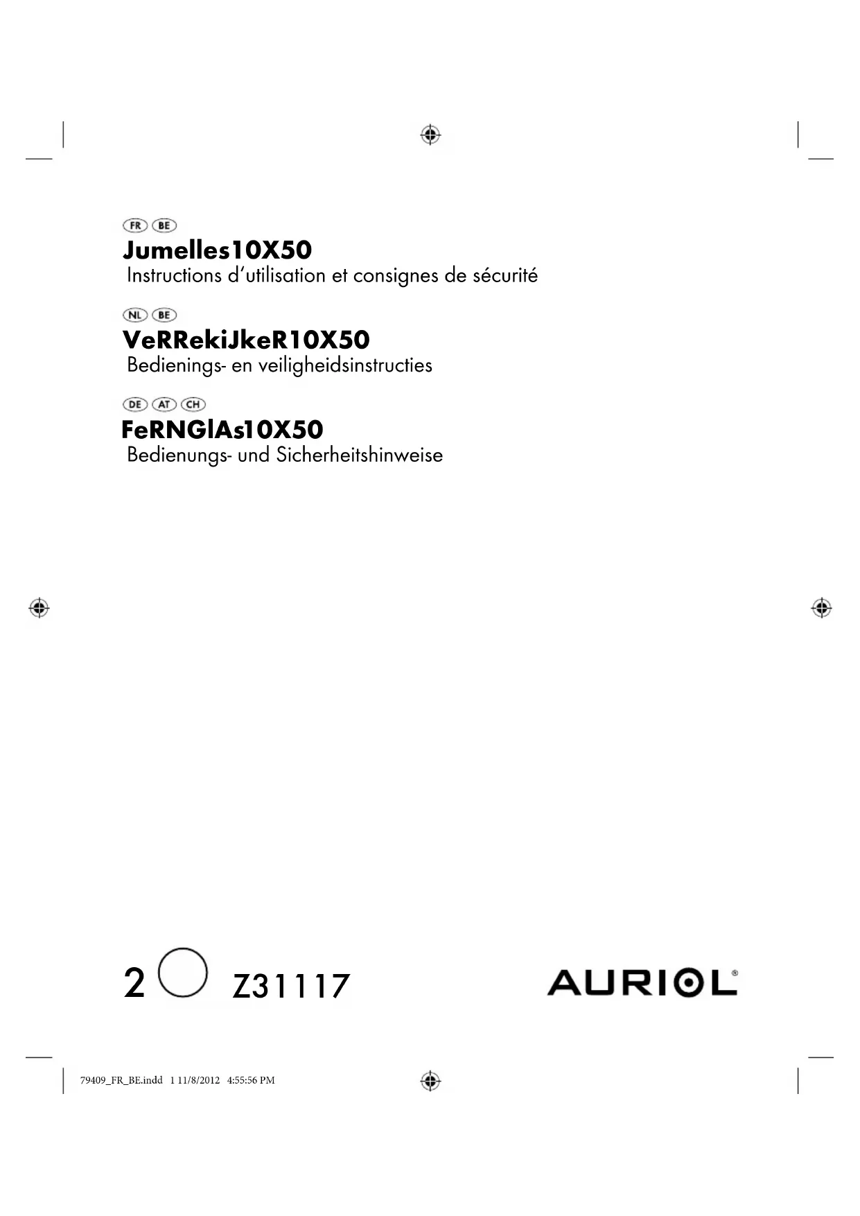 Recyclage L‘emballage et son matériel sont composés exclusivement de matières écologiques. Les matériaux peuvent être recyclés dans les points de collecte locaux. Les possibilités de recyclage des produits usés sont à demander auprès de votre municipalité. 79409_FR_BE.indd 5 11/8/2012 4:56:12 PM6 NL/BE Verrekijker 10X50