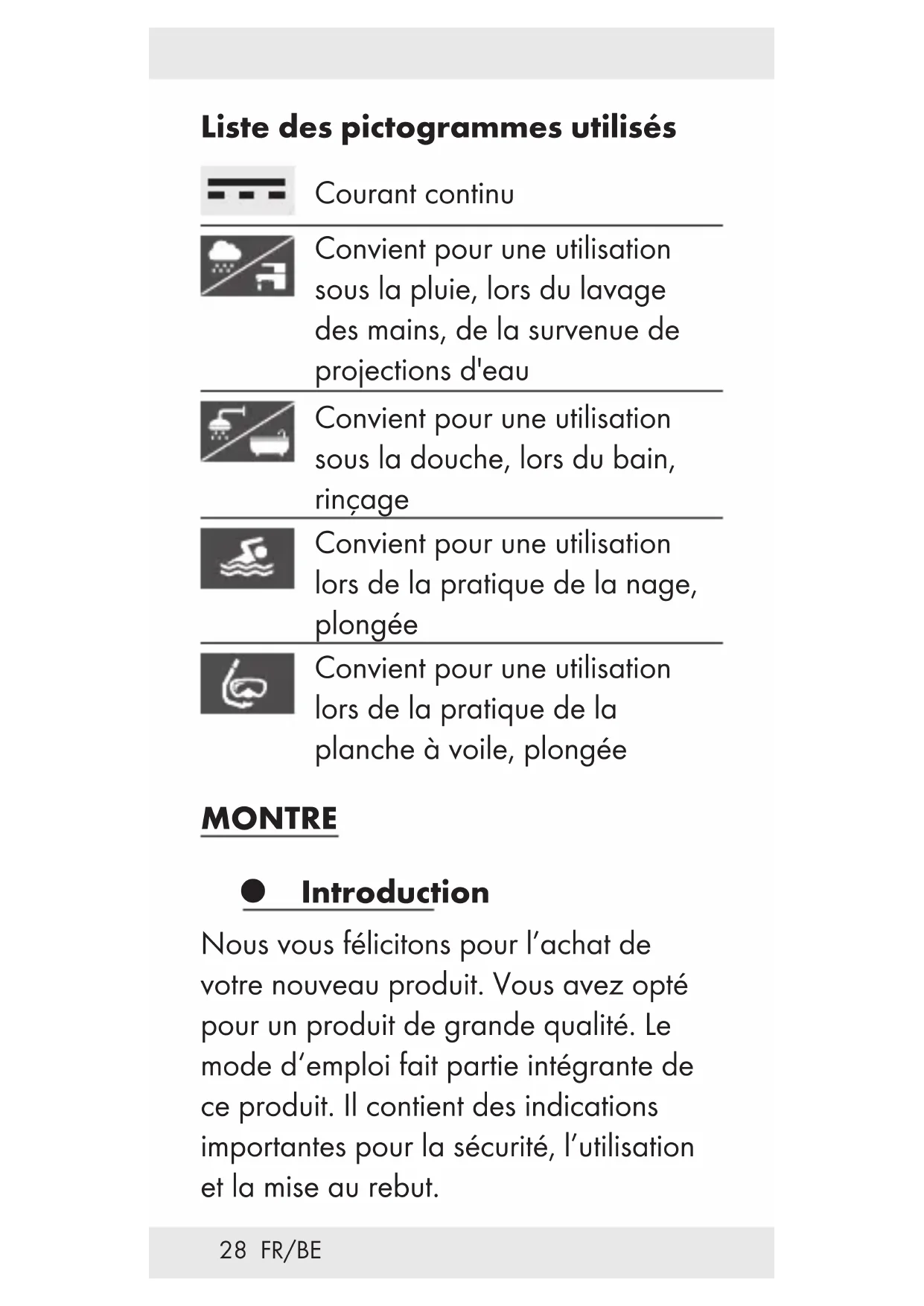 1 Montre 1 Pile (préinstallée) 1 Mode d'emploi