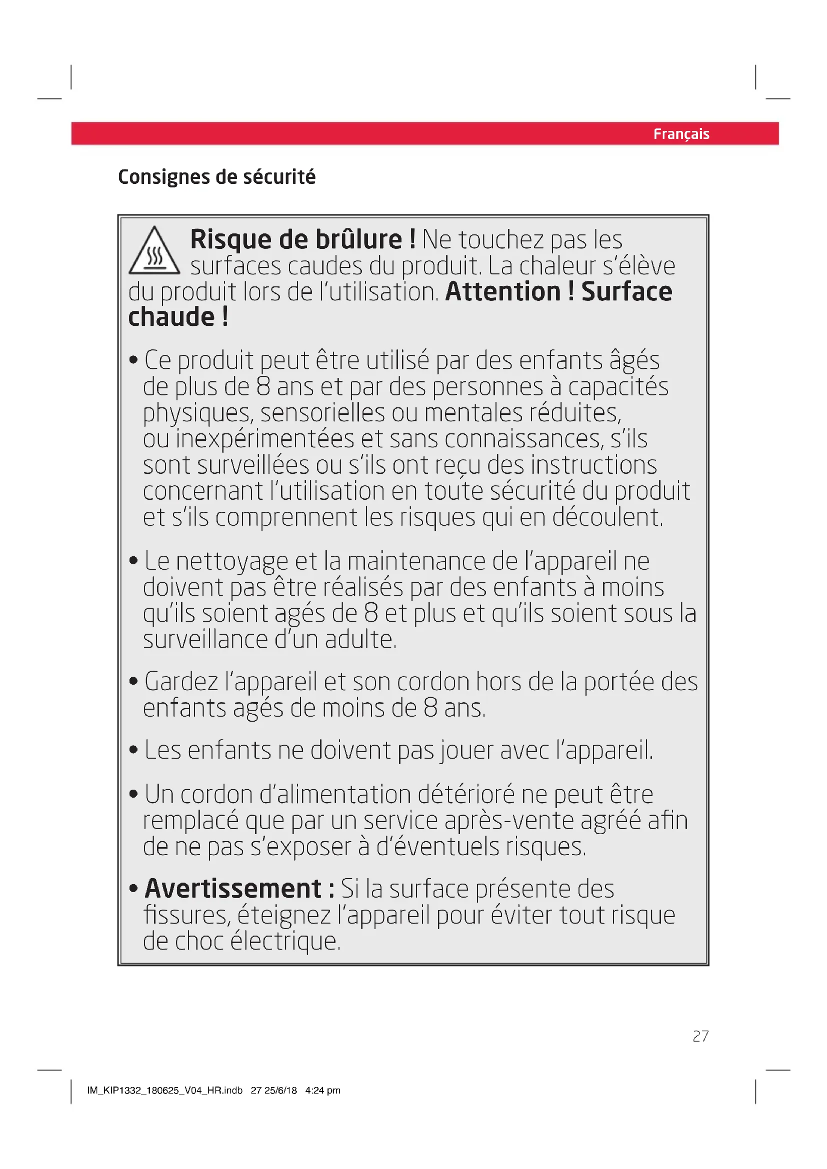 - Le nettoyage et la maintenance de l'appareil ne doit pas etre realizedes par des enfants a moins quils soient ages de 8 et plus et quils soient sous la surveillance d'un adulte.