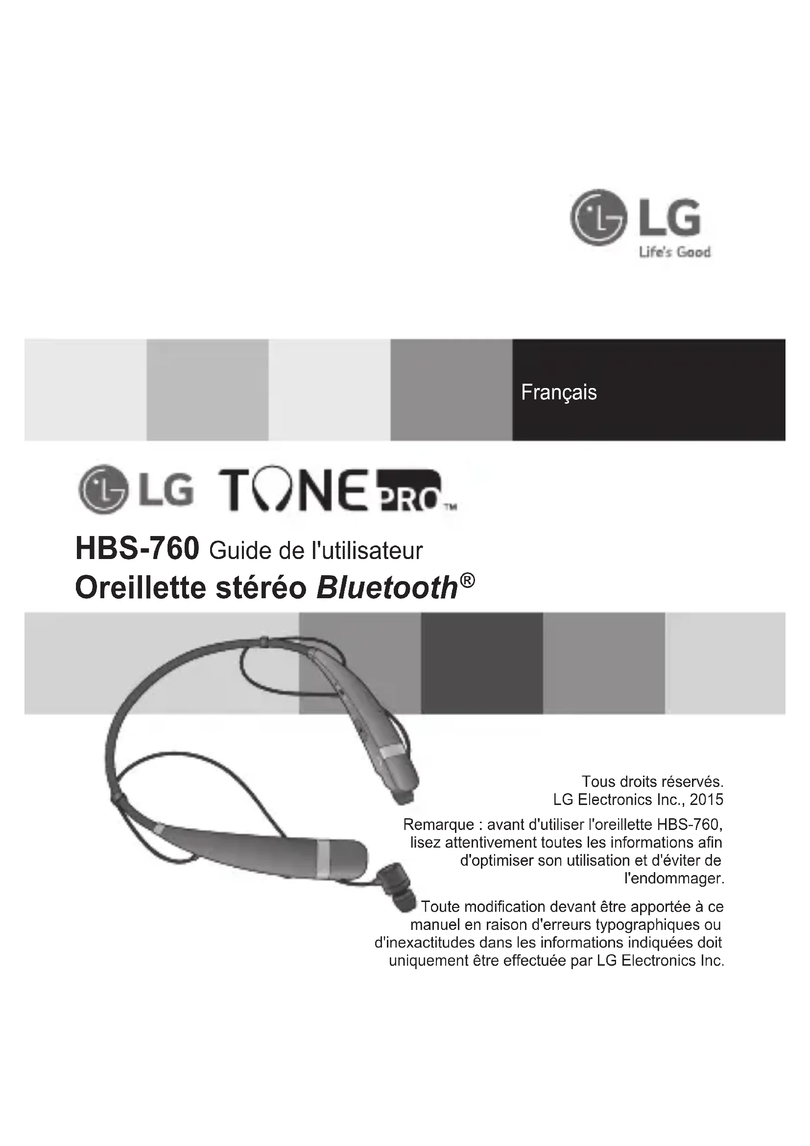 Retrouvez gratuitement la notice de l'appareil Tone Pro HBS760 LG au format PDF.