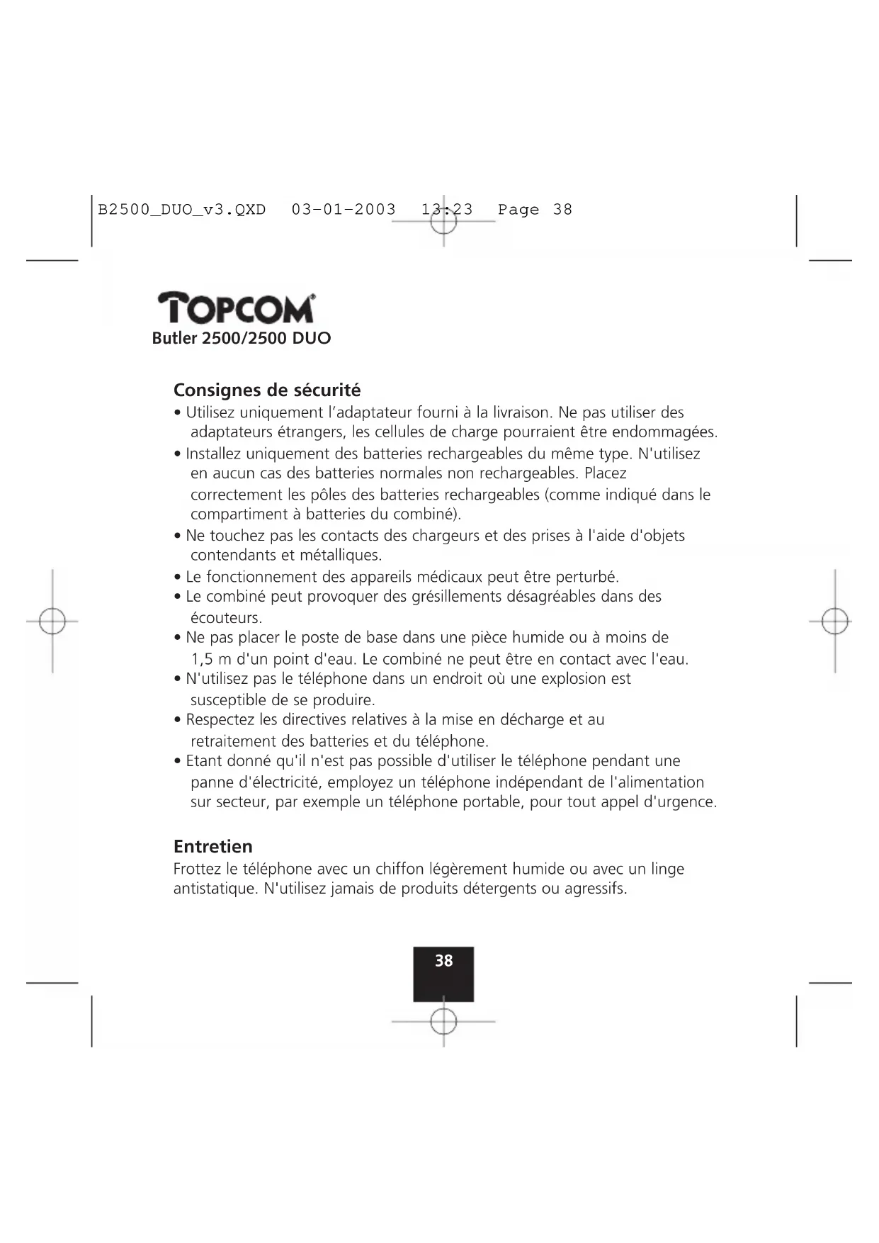 MODE D'EMPLOI Butler 2500 DUO TOPCOM
