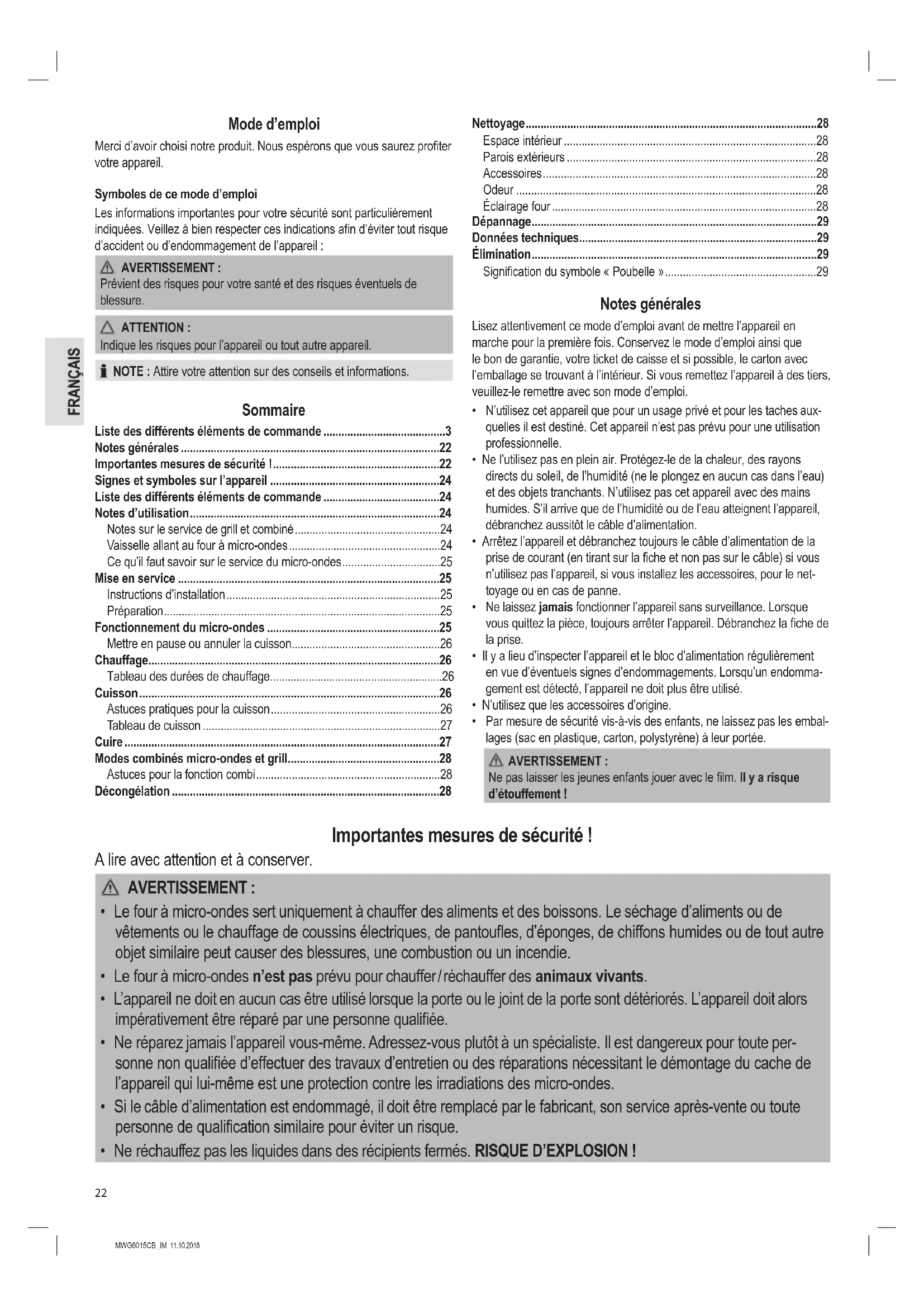 - Ne réchauffez pas les liquides dans des récipients fermés. RISQUE D’EXPLOSION !23
