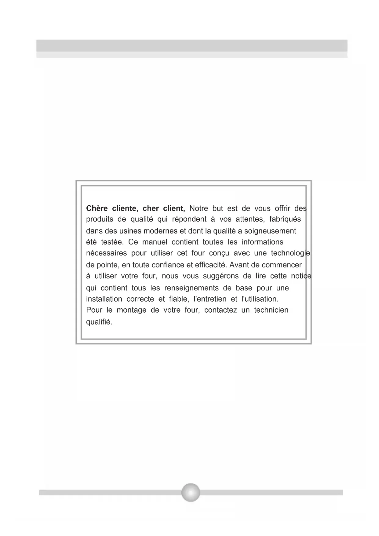 - Votre appareil de cuisson doit être installée et mis en service par un technicien qualifié. Le fabricant décline sa responsabilité pour tout dommage résultant d'un mauvais emplacement ou de l'installation de votre appareil de cuisson par un technicien non qualifié.