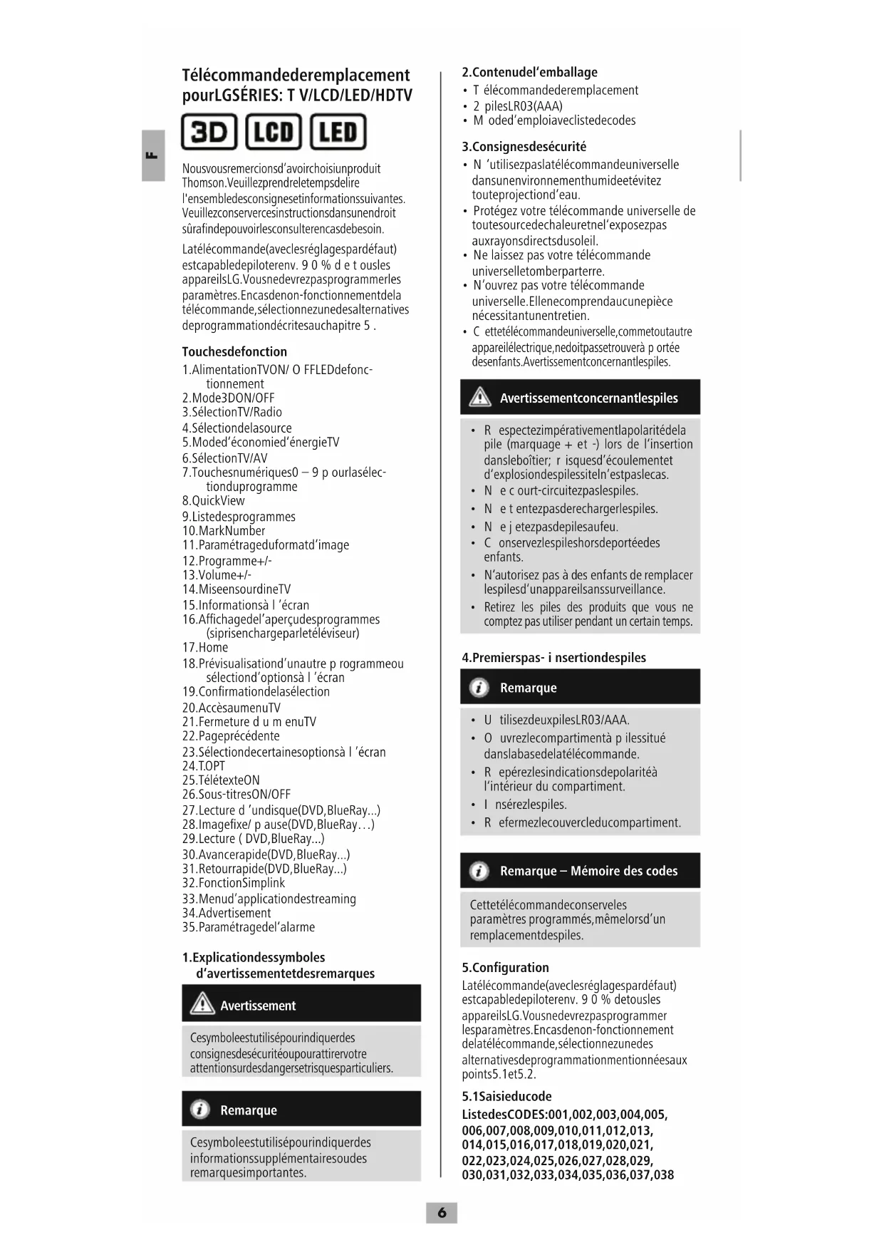 Téléchargez la notice de votre Télécommande au format PDF gratuitement ! Retrouvez votre notice ROC1128LG - THOMSON et reprennez votre appareil électronique en main. Sur cette page sont publiés tous les documents nécessaires à l'utilisation de votre appareil ROC1128LG de la marque THOMSON.