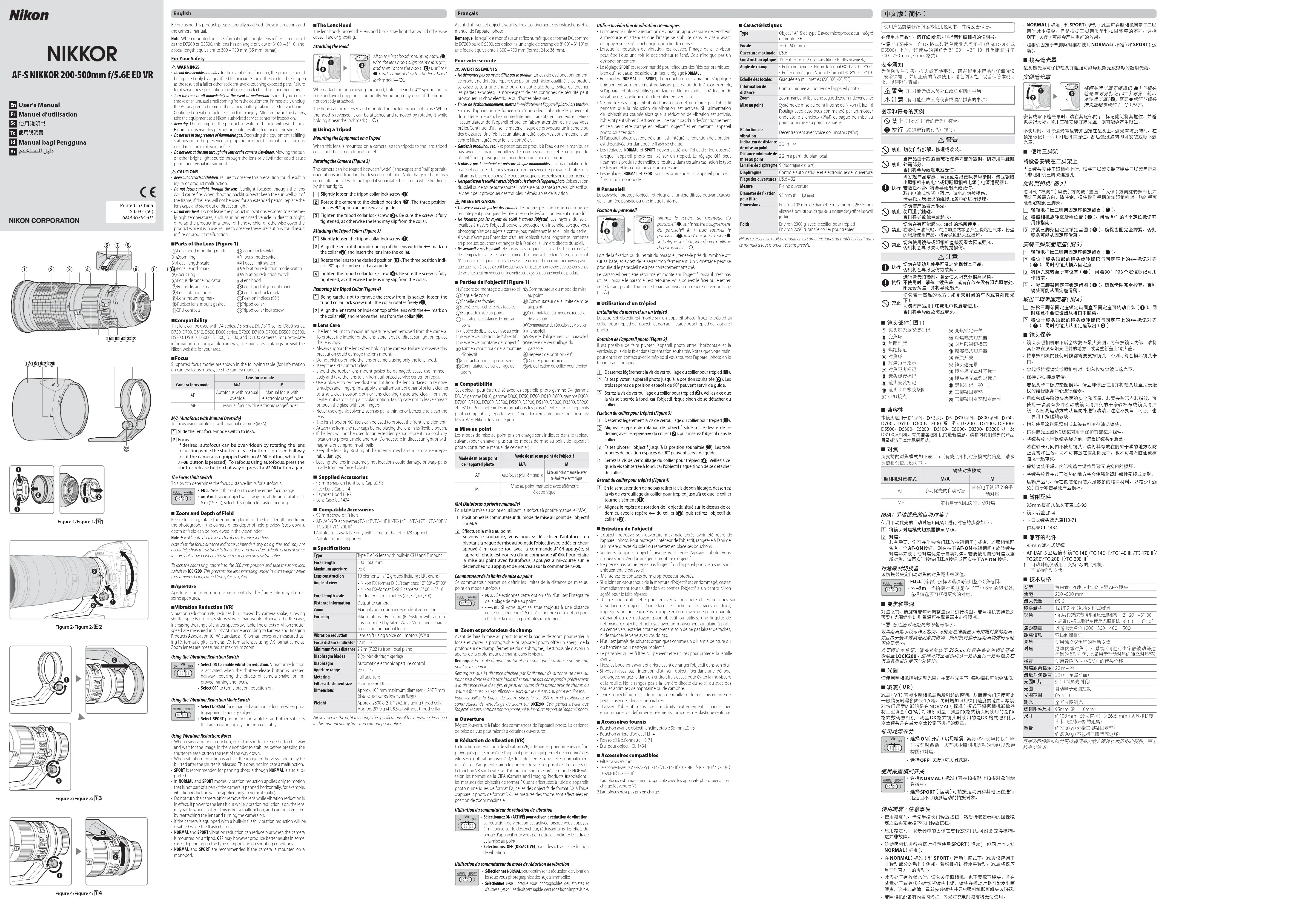 MODE D'EMPLOI Nikkor AFS 200500mm f5.6E ED VR NIKON