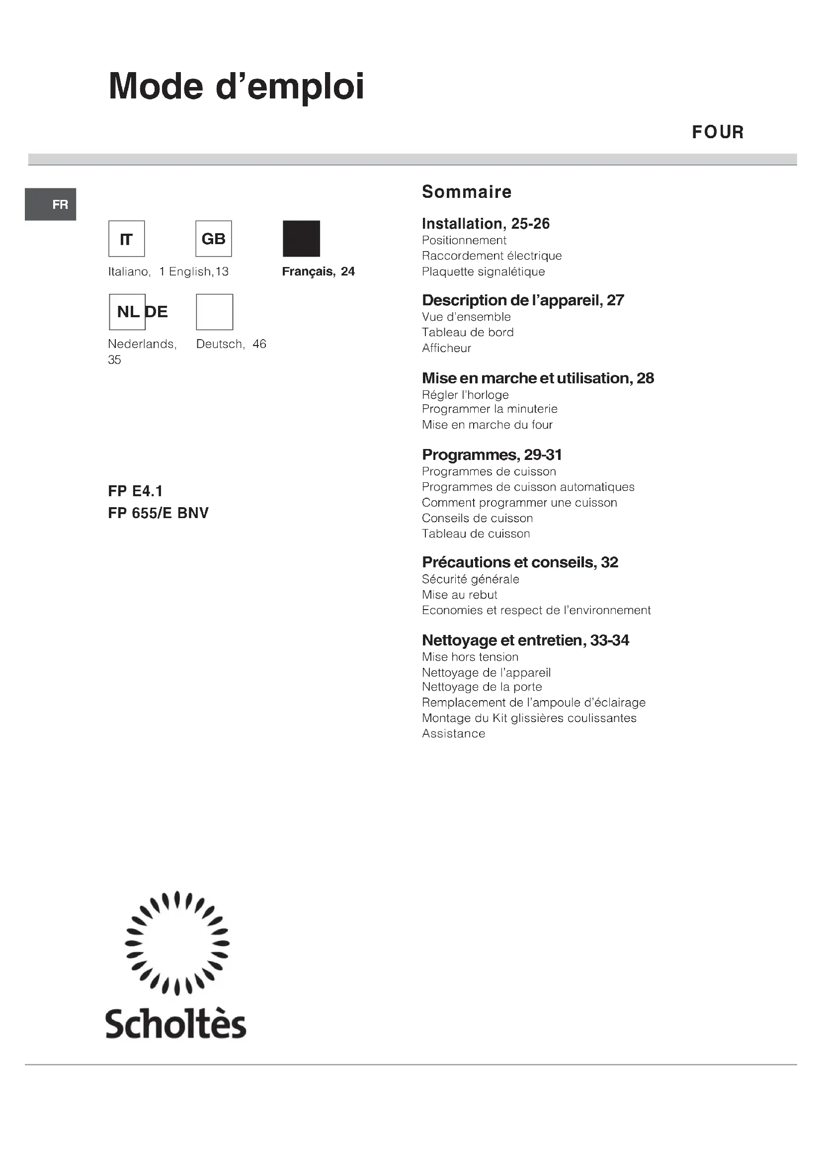 FP E4.1 - Four SCHOLTES - Notice d'utilisation et mode d'emploi gratuit