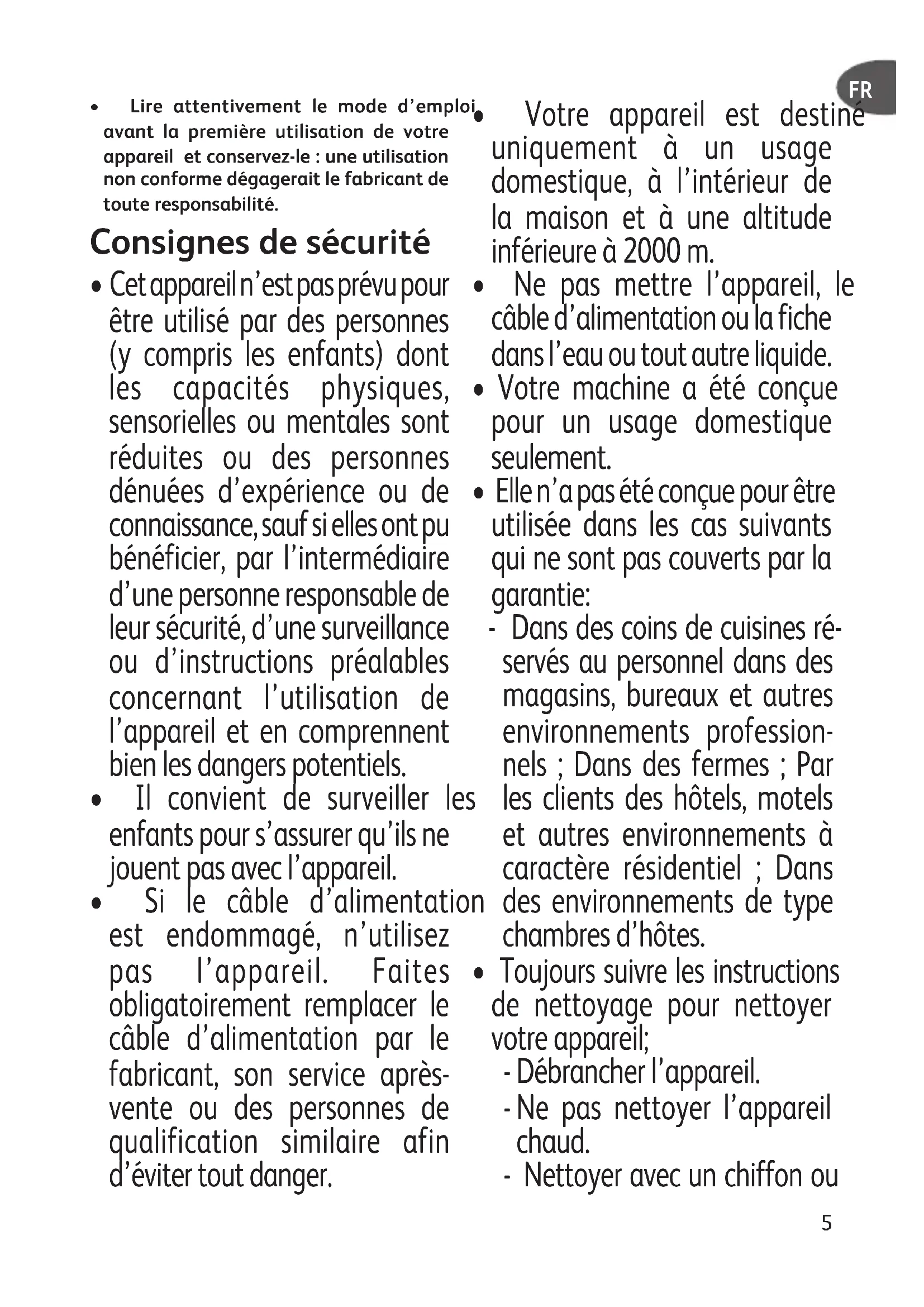 - Votre appareil est destiné uniquement à un usage domestique, à l’intérieur de la maison et à une altitude inférieure à 2000 m.