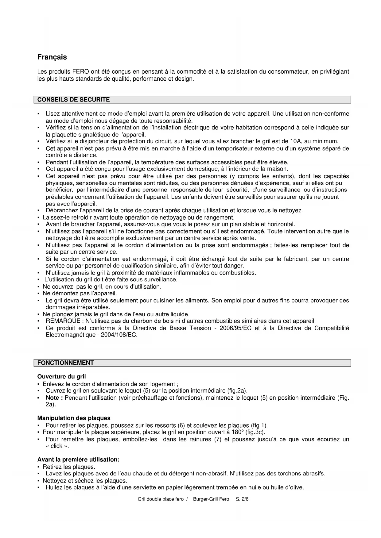 H8251 - Gril électrique Fero - Notice d'utilisation et mode d'emploi gratuit