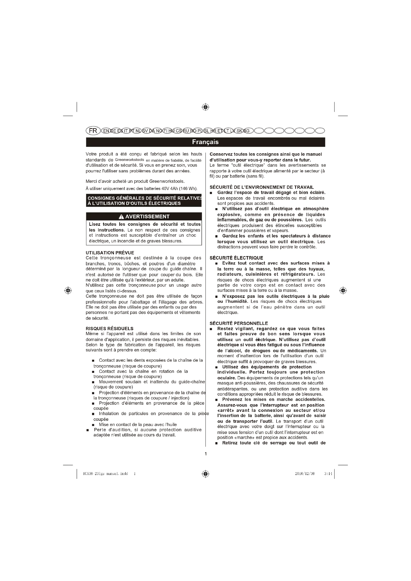GD40CS40 - Scie GREENWORKS - Notice d'utilisation et mode d'emploi gratuit