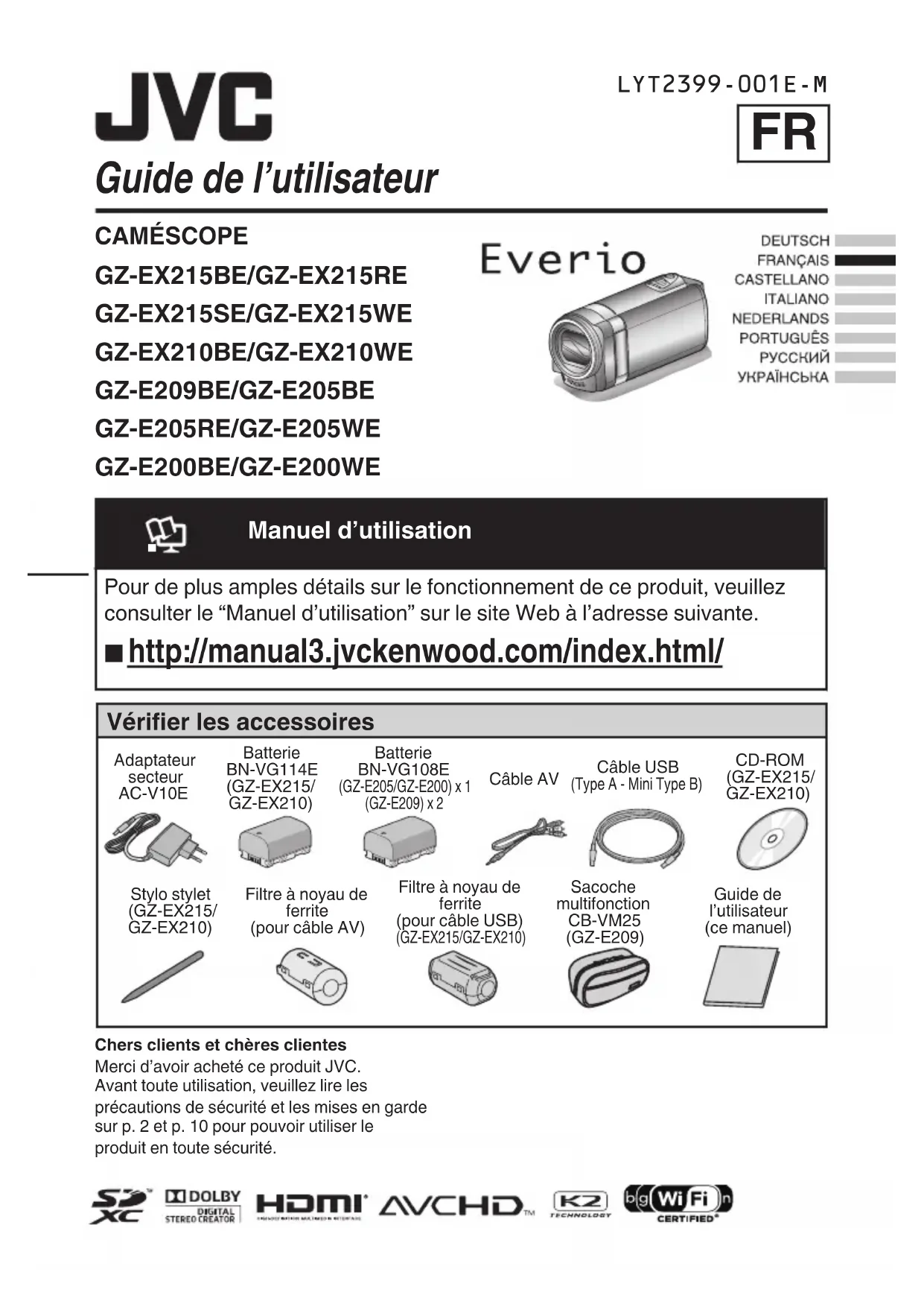 Retrouvez gratuitement la notice de l'appareil Everio GZE200WE JVC au format PDF.
