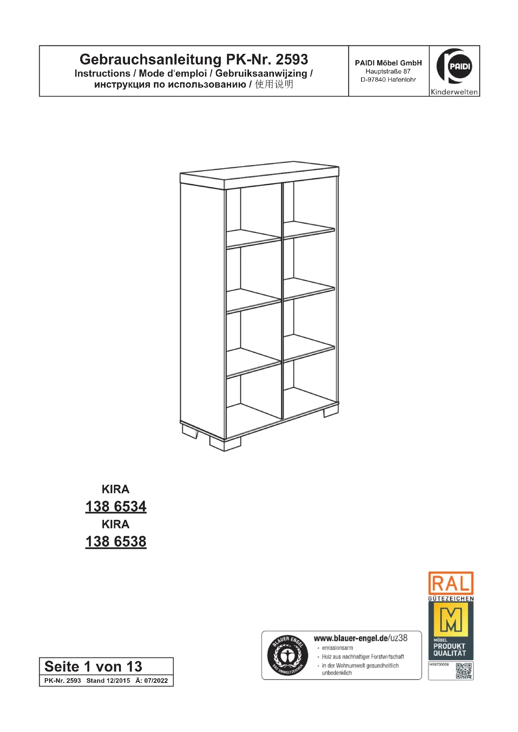Kira - Lit bébé Paidi - Notice d'utilisation et mode d'emploi gratuit