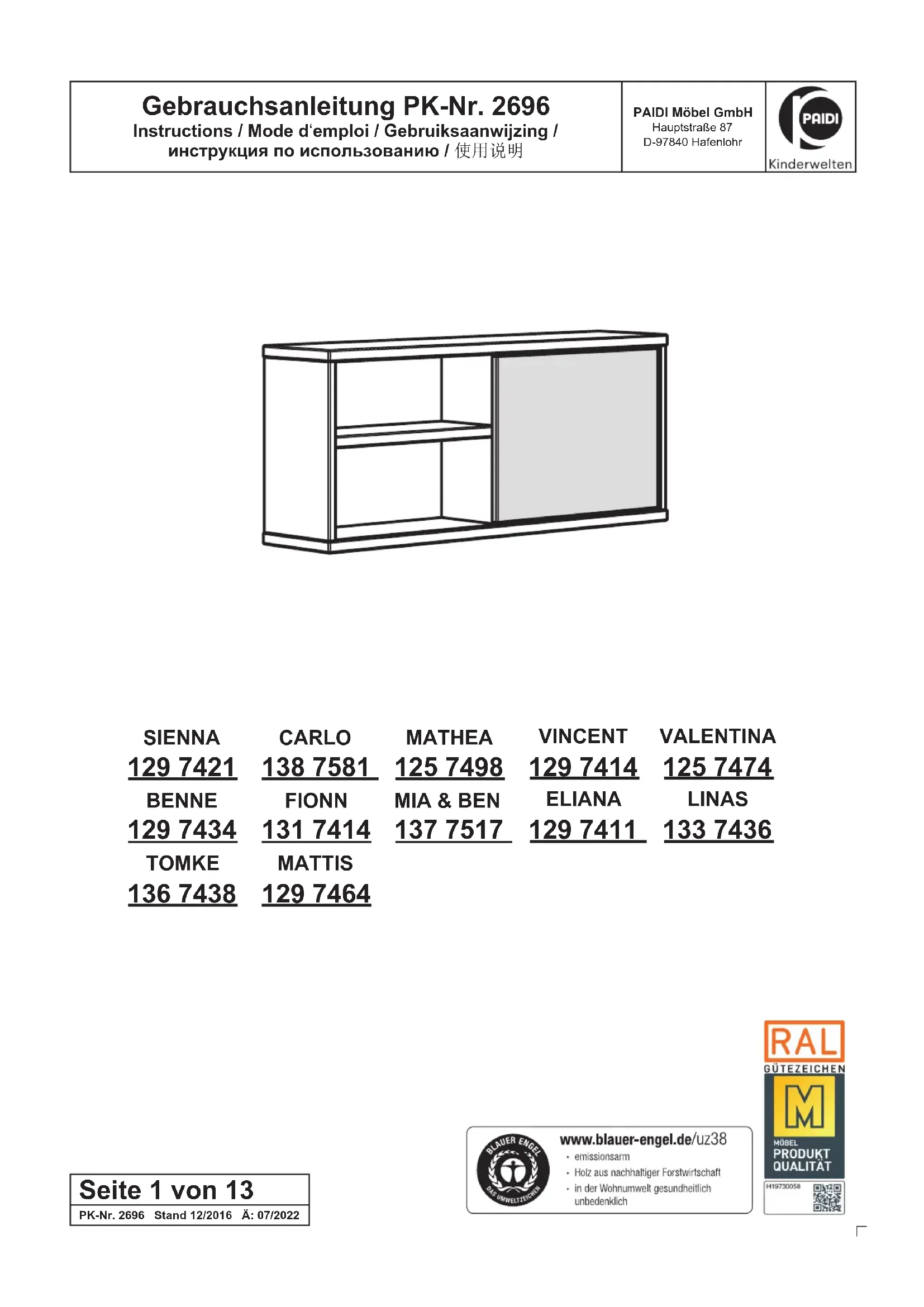 Carlo - Lit bébé Paidi - Notice d'utilisation et mode d'emploi gratuit