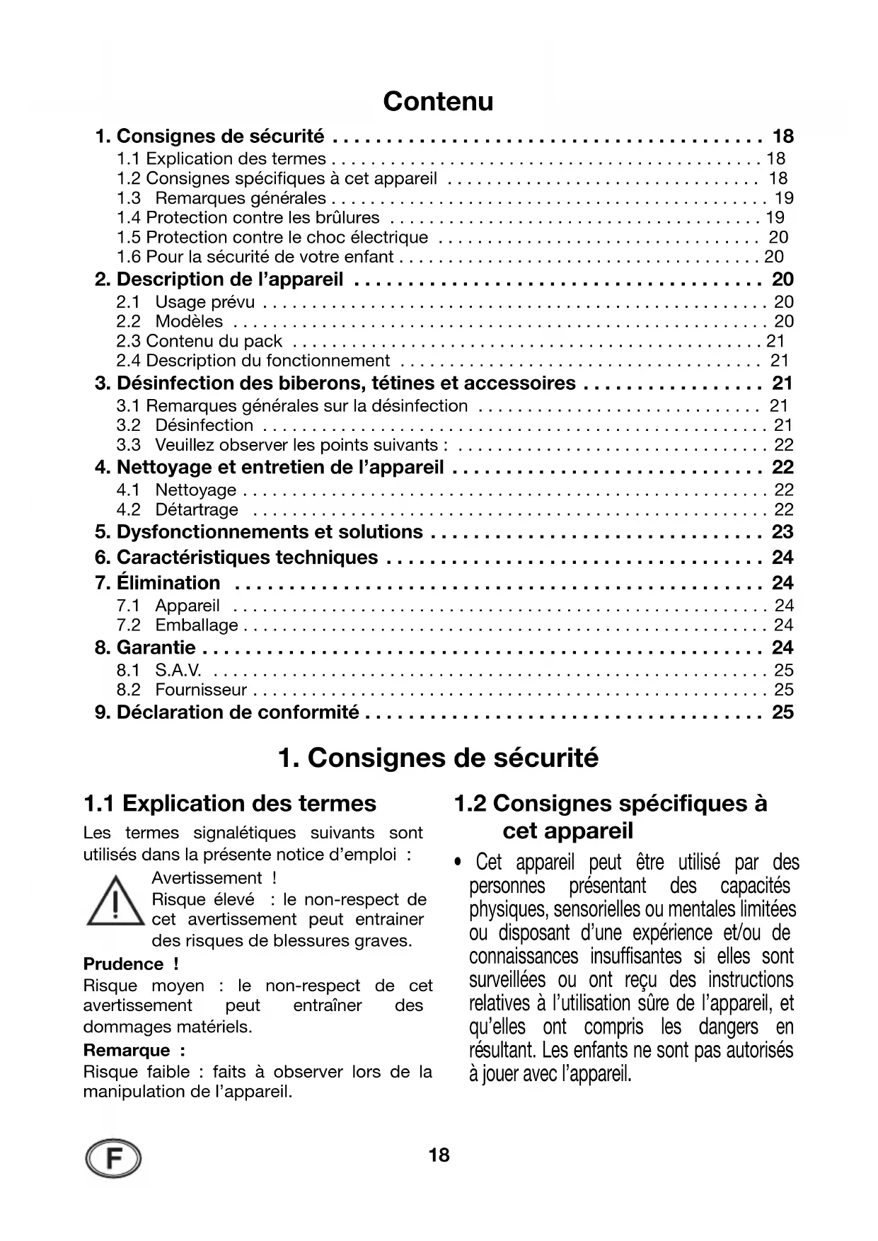 1. Consignes de sécurité . . . . . . . . . . . . . . . . . . . . . . . . . . . . . . . . . . . . . . . . 18