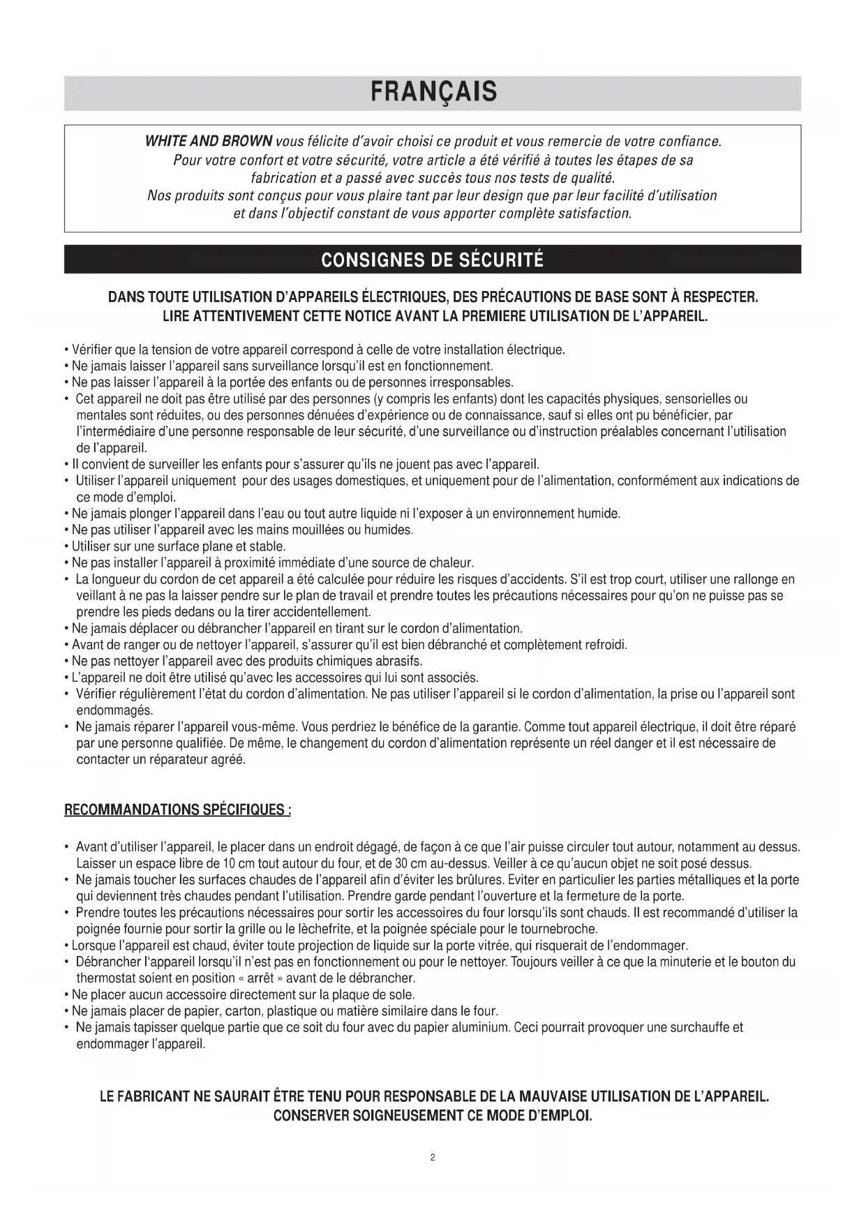 Téléchargez la notice de votre Four au format PDF gratuitement ! Retrouvez votre notice MF 448 - WHITE AND BROWN et reprennez votre appareil électronique en main. Sur cette page sont publiés tous les documents nécessaires à l'utilisation de votre appareil MF 448 de la marque WHITE AND BROWN.