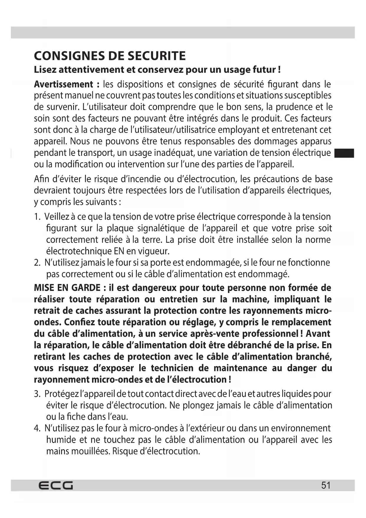 MTM 2070 W - Four à micro-ondes ECG - Notice d'utilisation et mode d'emploi gratuit