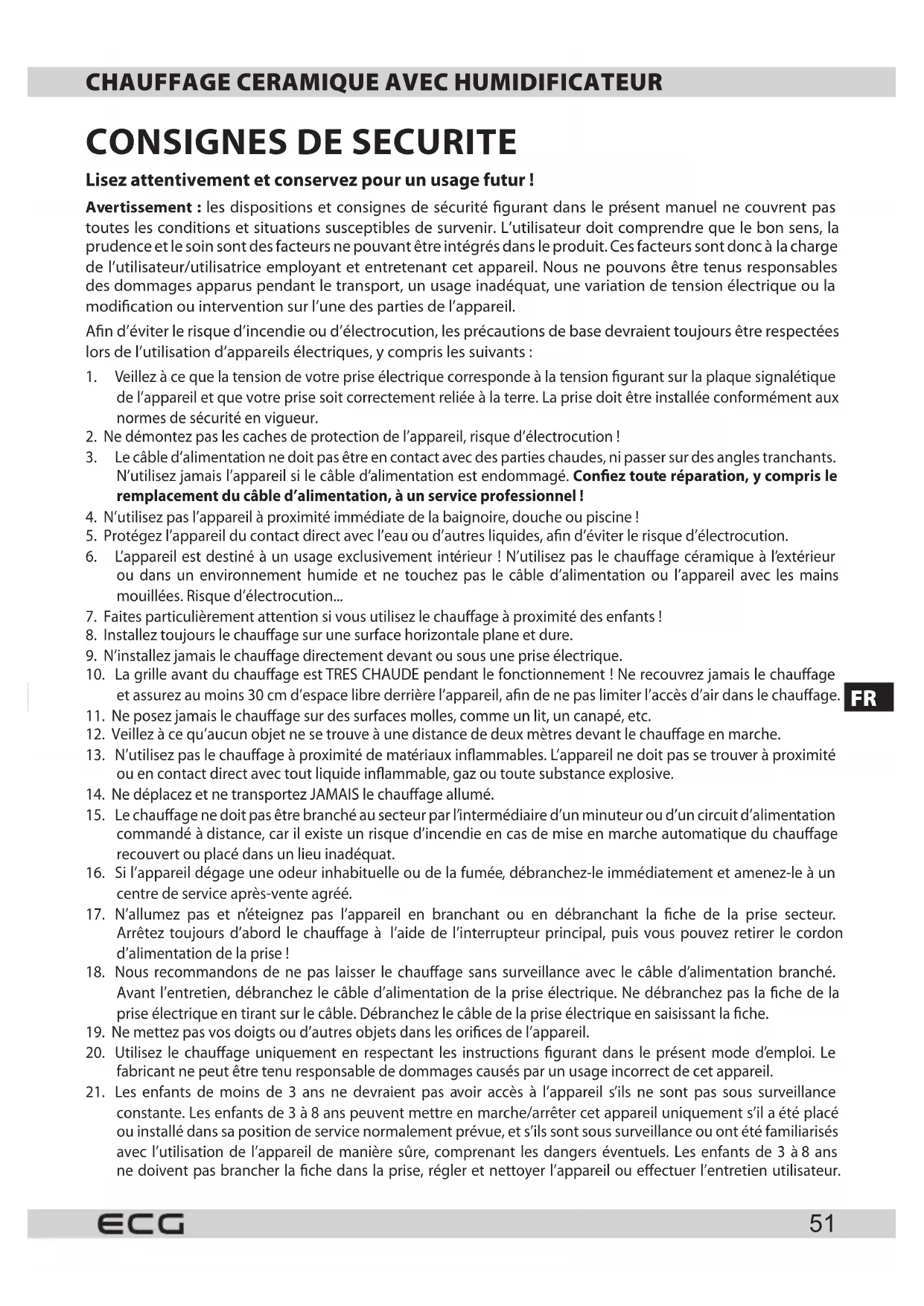 Si I'appareil cesse de fonctionner, le fusible a vraisemblablement brulé. Veuillez vous adresser à un service après-vente agreé. - Le chauffage céramique est équipé d'un commutateur de sécurité qui étant automatiquement le chauffage en cas de renversement.