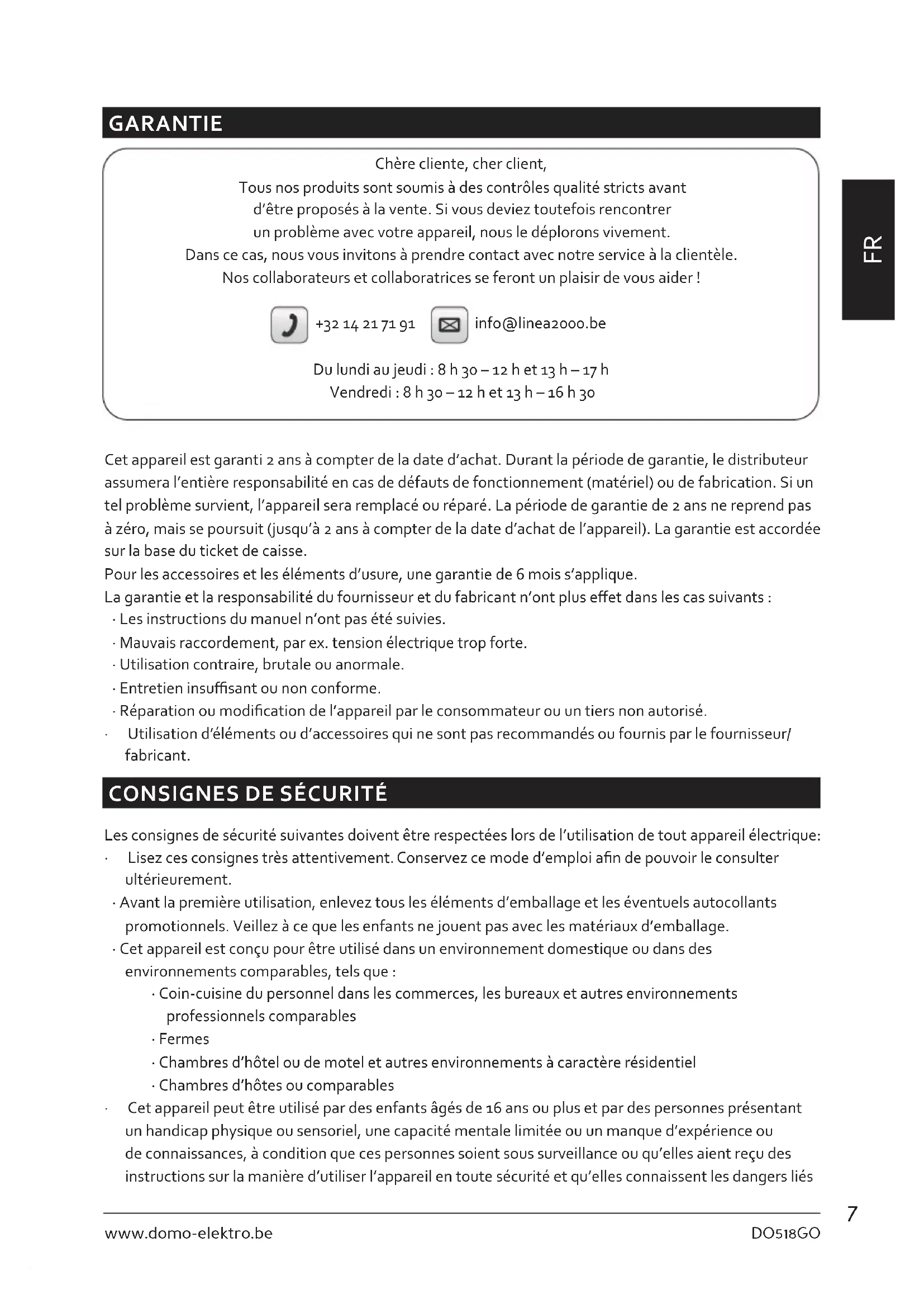 MODE D'EMPLOI DO518GO DOMO