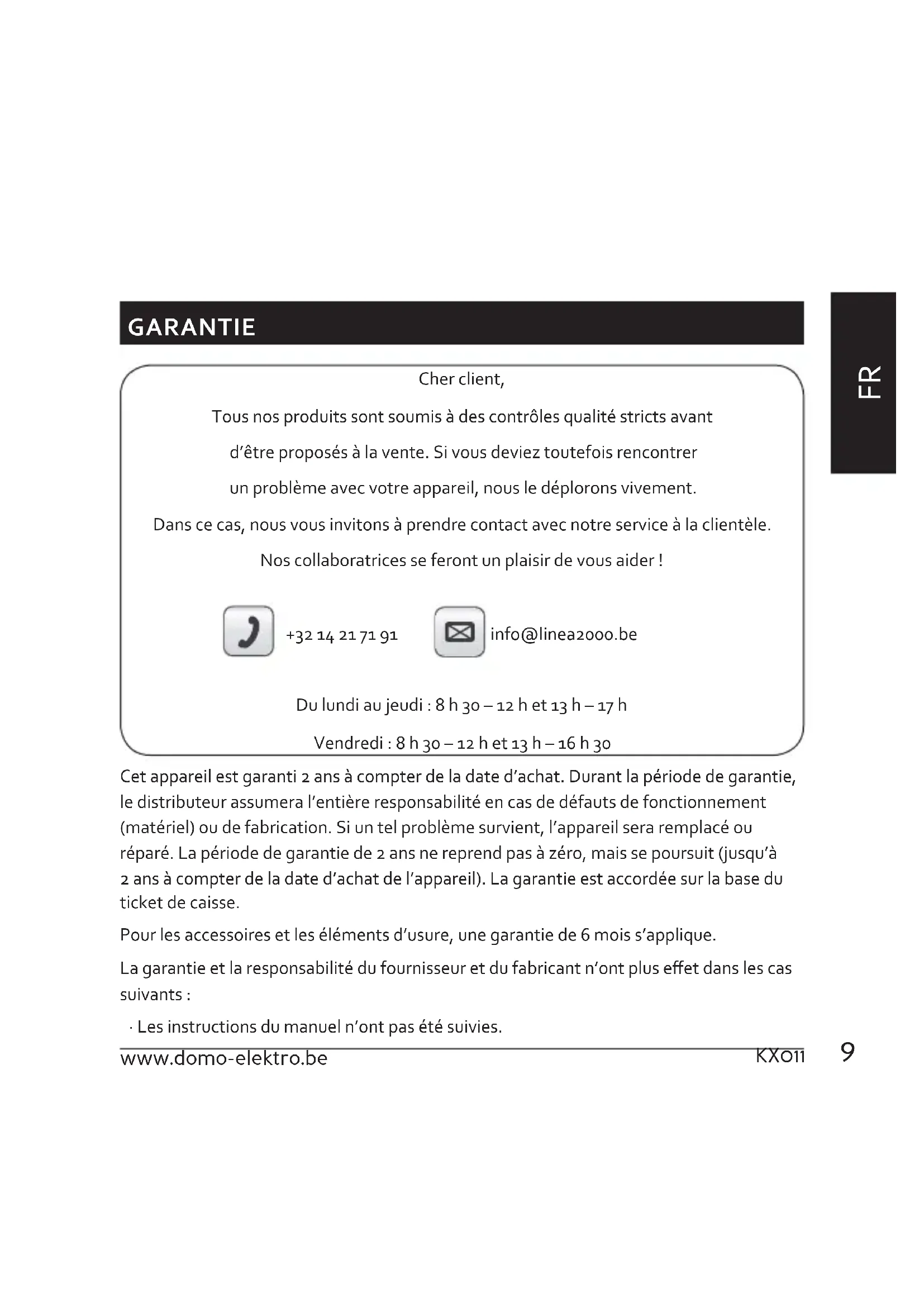 Retrouvez gratuitement la notice de l'appareil KX011 DOMO au format PDF.