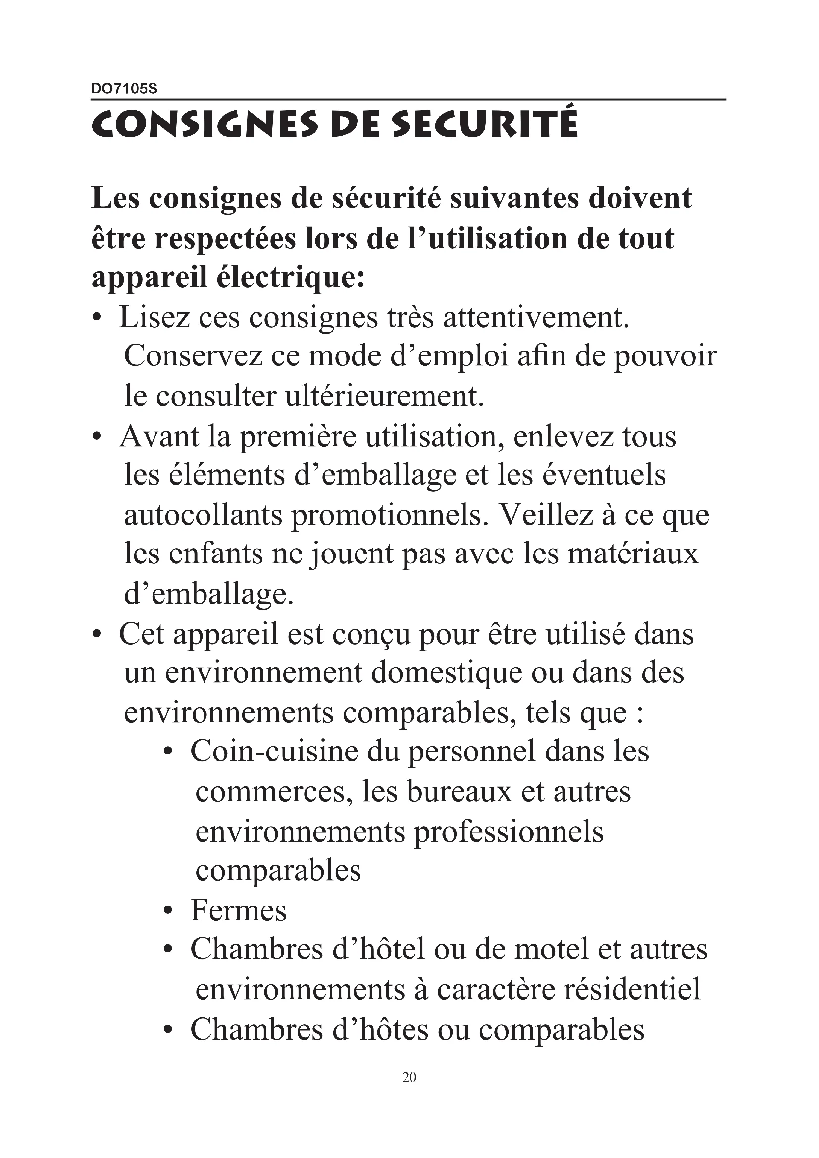 Retrouvez gratuitement la notice de l'appareil DO7105S DOMO au format PDF.