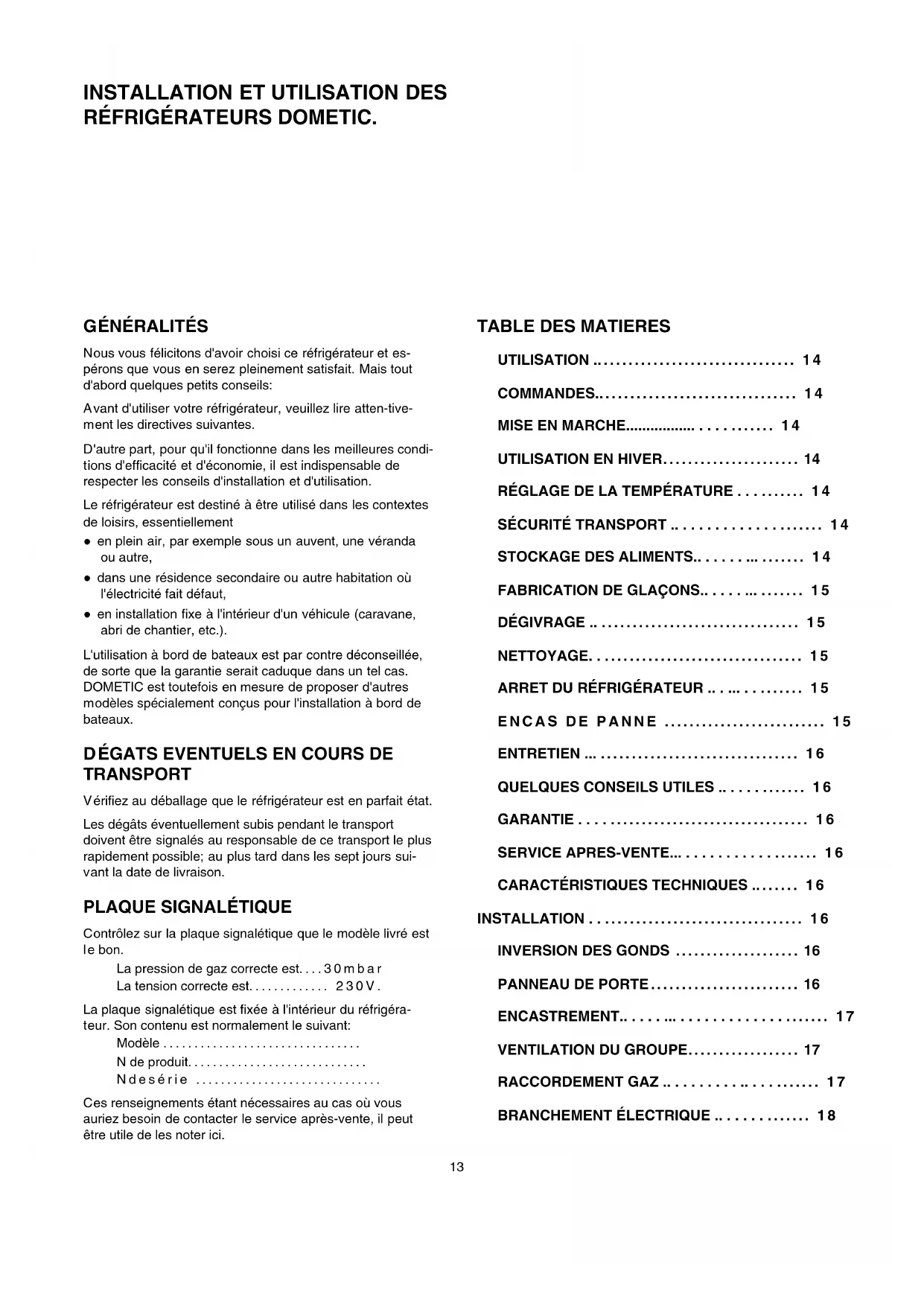 e sorte que la garantie serait caduque dans un tel cas. DOMETIC est toutefois en mesure de proposer d'autres